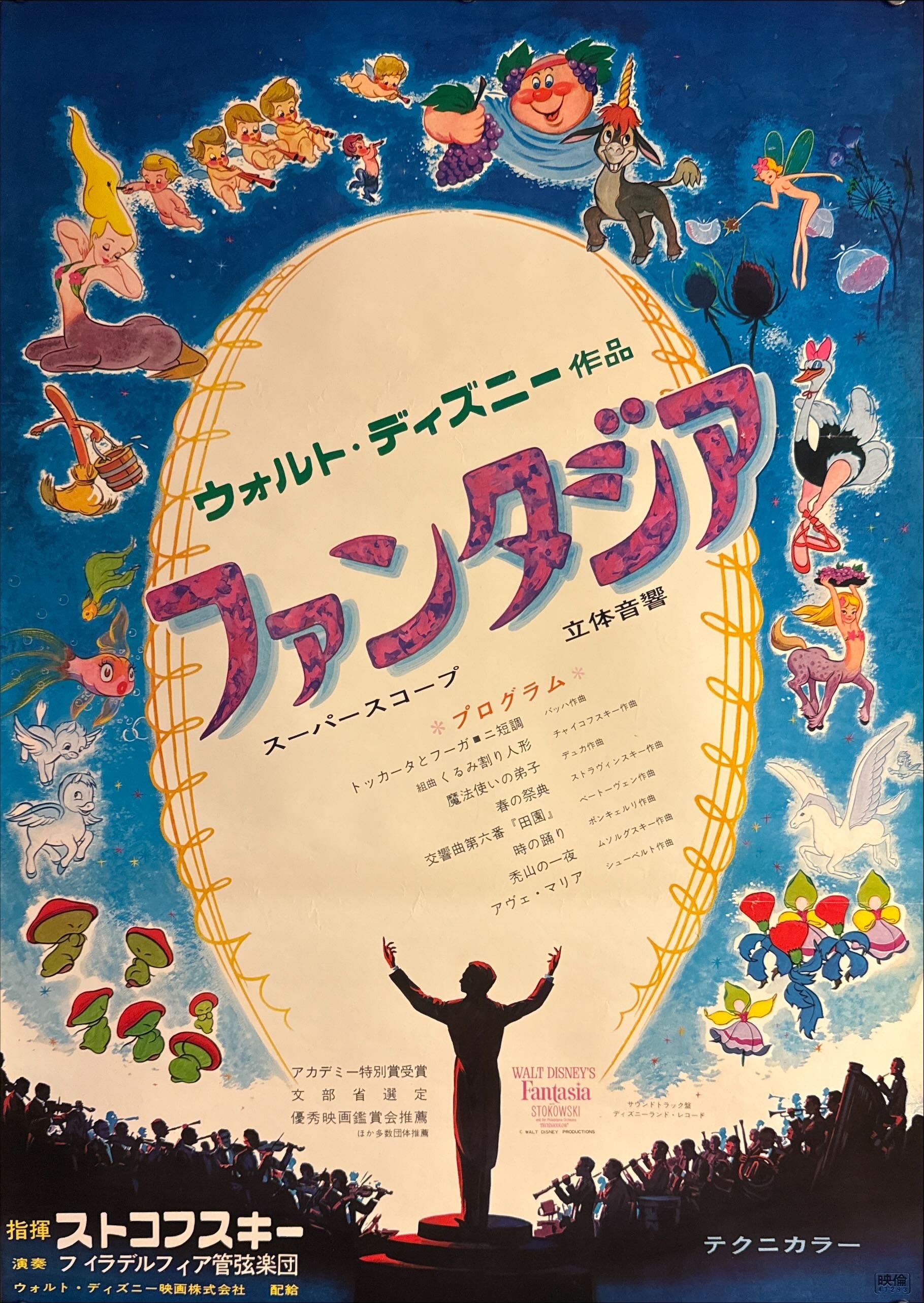 This is an original Japanese B2 theatrical poster printed in 1966 for a Japanese re-release of Disney’s landmark animated feature Fantasia (ファンタジア). (For context: the film’s first Japanese release was in 1955.)