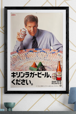 “KIRIN LAGER BEER × HARRISON FORD x FUGU SASHIMI”, Original Release Japanese Promotional Poster 1994–1995, B2 Size (51 × 73 cm) P43