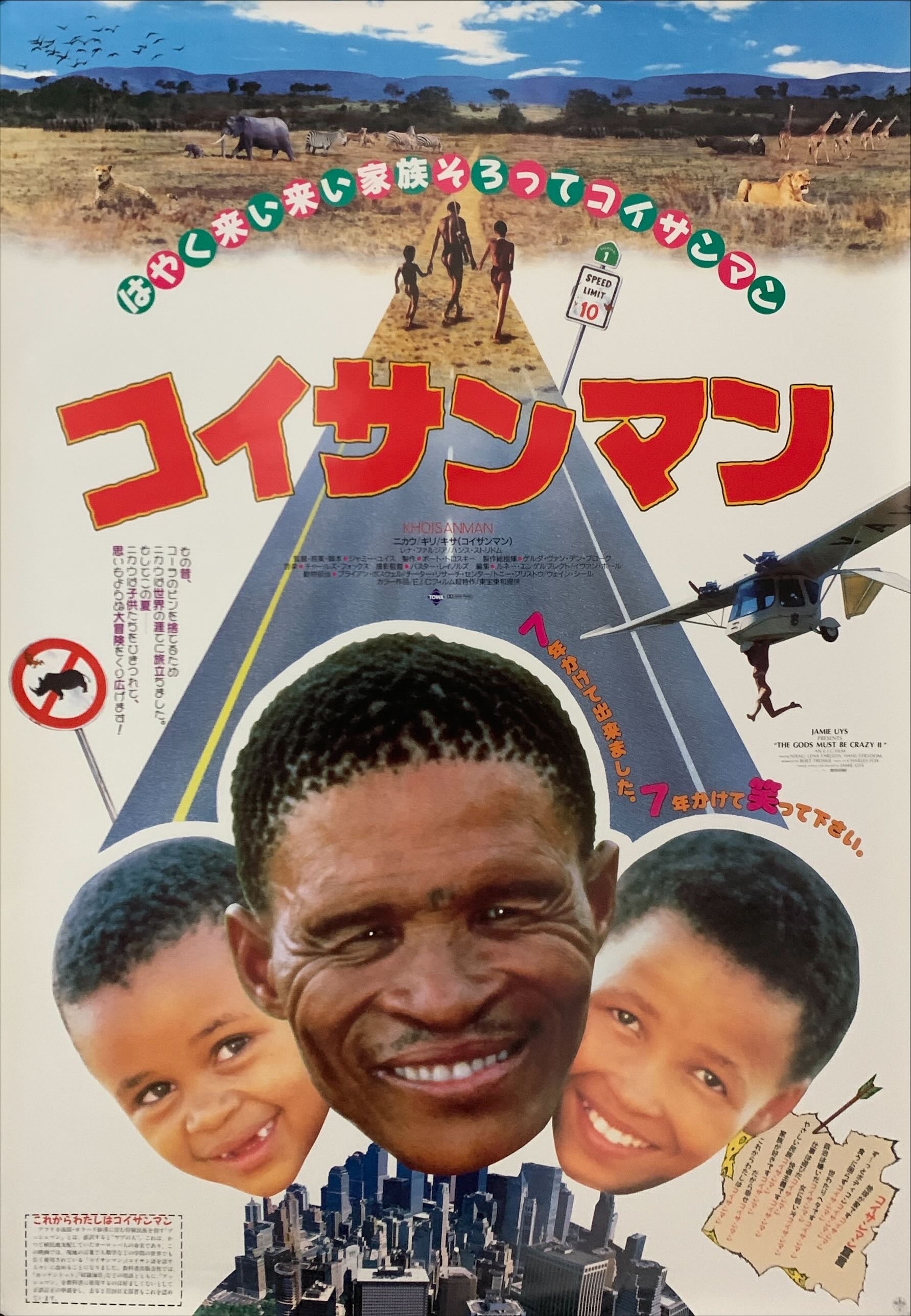 This is an original Japanese poster printed in 1980 for the first release of The Gods Must Be Crazy.