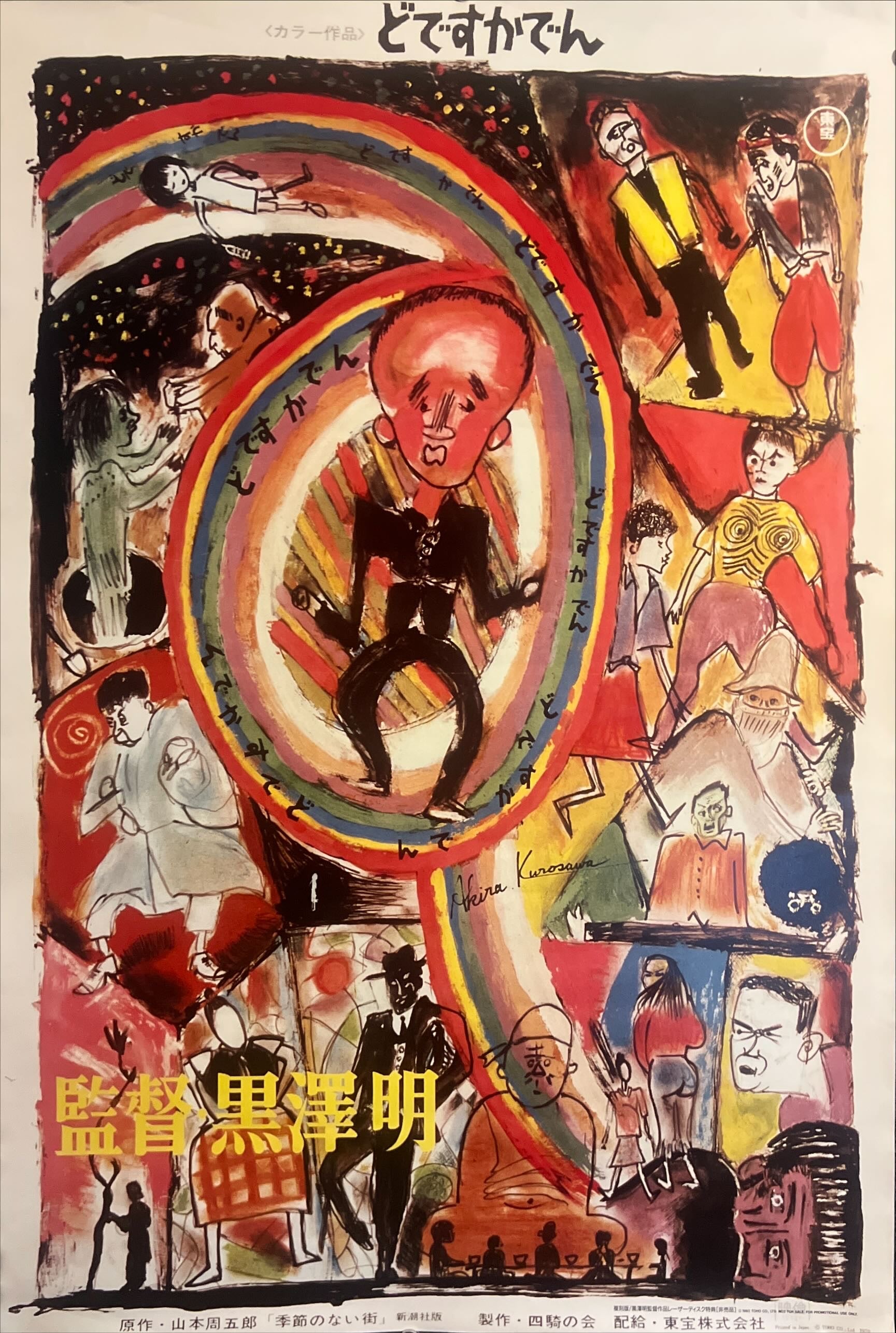 This is an original Japanese B2 poster issued in 1993 for the LaserDisc release of Dodes'ka-den (どですかでん), Akira Kurosawa’s extraordinary 1970 film. It is not the original 1970 theatrical poster, but an authentic Japanese 1993 home video / LaserDisc release issue from the film’s original analogue-video era.
