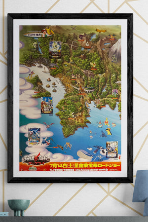 “Pokémon: Dialga vs. Palkia vs. Darkrai – Johto World Map” (劇場版ポケットモンスター/ディアルガVSパルキアVSダークライ ワールドポスターマップ), Original Japanese Promotional Poster 2007, B2 Size (51 × 73 cm) ZA399