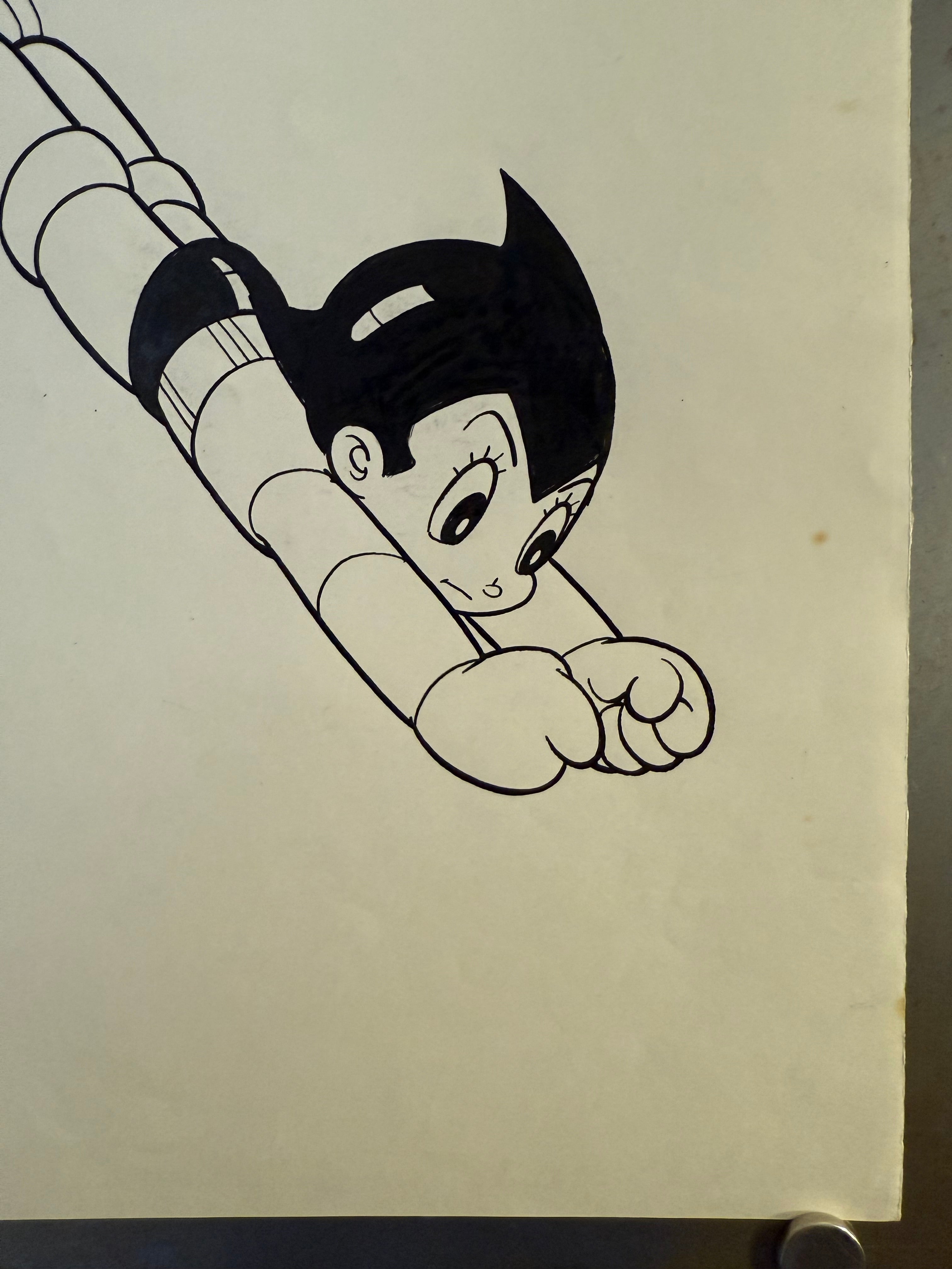 Original Hand‑Drawn Astro Boy Ink Illustration – “Flying Pose” (No.19, c. 1980s–1990s)