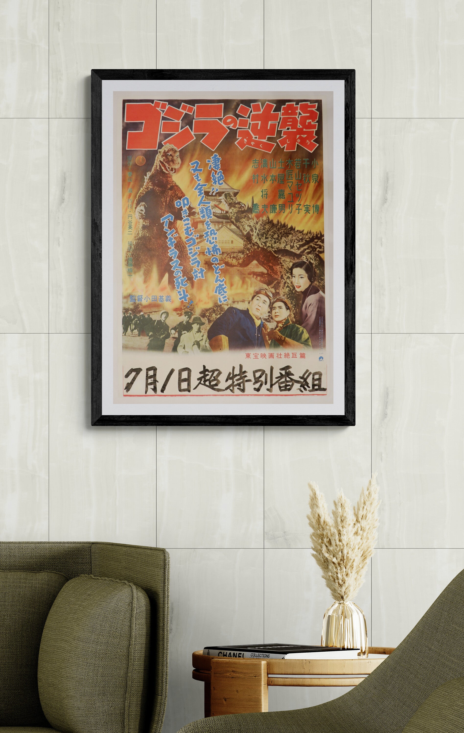 A crown-jewel sequel sheet from the dawn of kaijū cinema: the exceedingly elusive regional (“chihōban”) Style B for Gojira no Gyakushū—a poster whose scarcity is so extreme that this is the first time we have ever seen/handled an example.