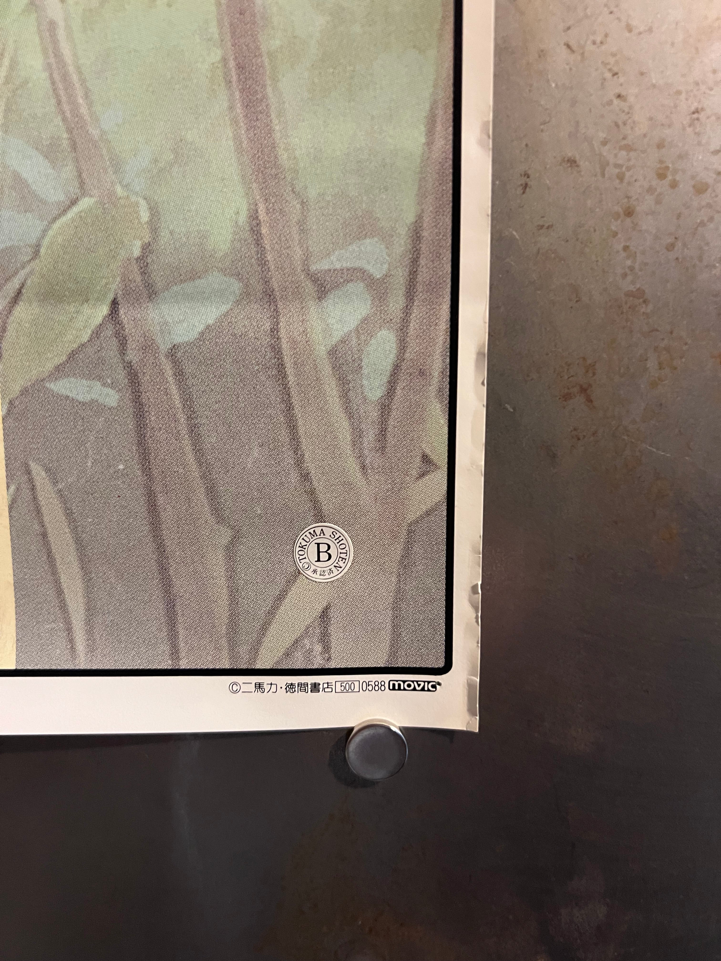 This is an original licensed promotional (販促) B2 poster produced in 1988 in Japan for Hayao Miyazaki’s My Neighbor Totoro (となりのトトロ). Issued for retail/bookstore and merchandise display (not a cinema one-sheet), it carries period rights for Nibariki / Tokuma Shoten and was distributed by MOVIC.