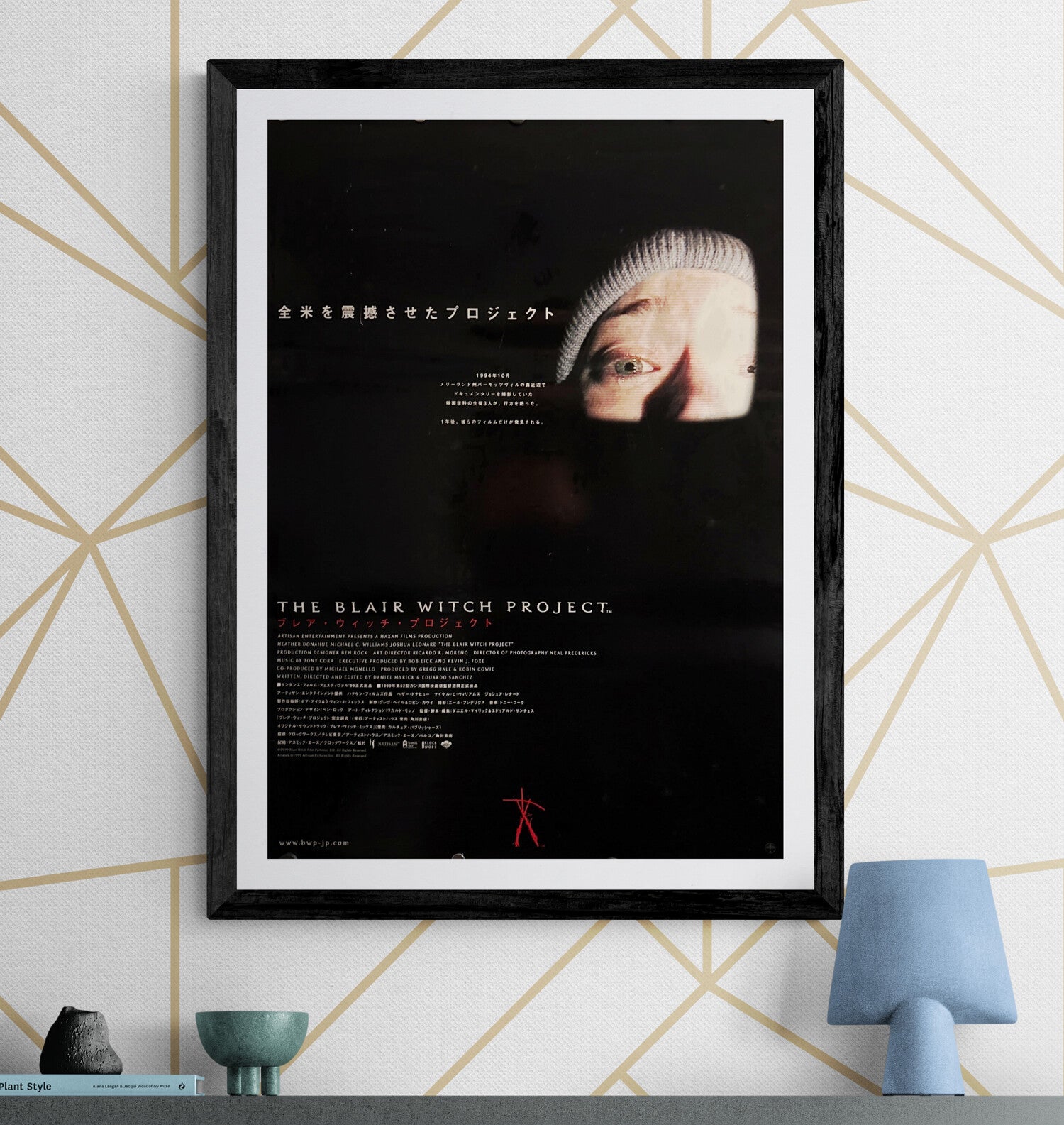 This is an original Japanese B2 poster printed in 1999 for the breakout indie phenomenon The Blair Witch Project—the micro-budget horror that rewired marketing with its faux-documentary mythos and ushered in the modern found-footage wave.