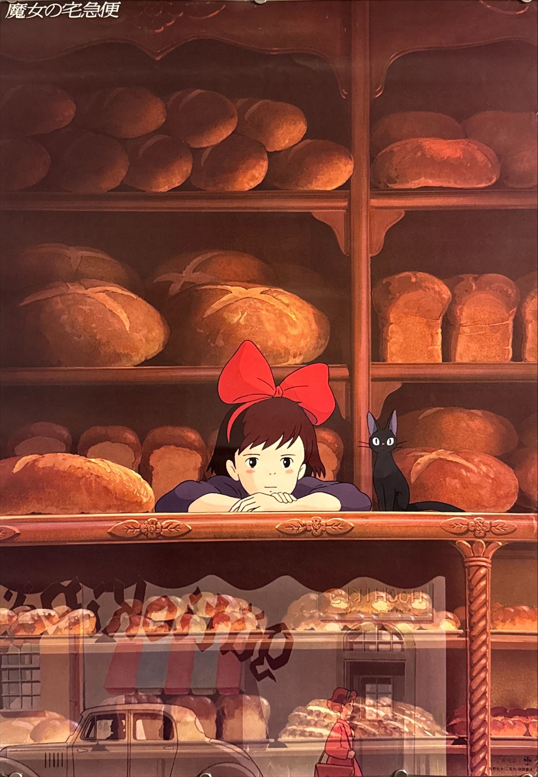 This is an original Japanese B2 poster printed for Hayao Miyazaki’s beloved Studio Ghibli feature Kiki’s Delivery Service (1989), distributed domestically by Toei. Set in the sun-washed port city of Koriko, the film follows 13-year-old witch Kiki and her cat Jiji as she finds her independence running an air-courier service from a friendly neighborhood bakery.