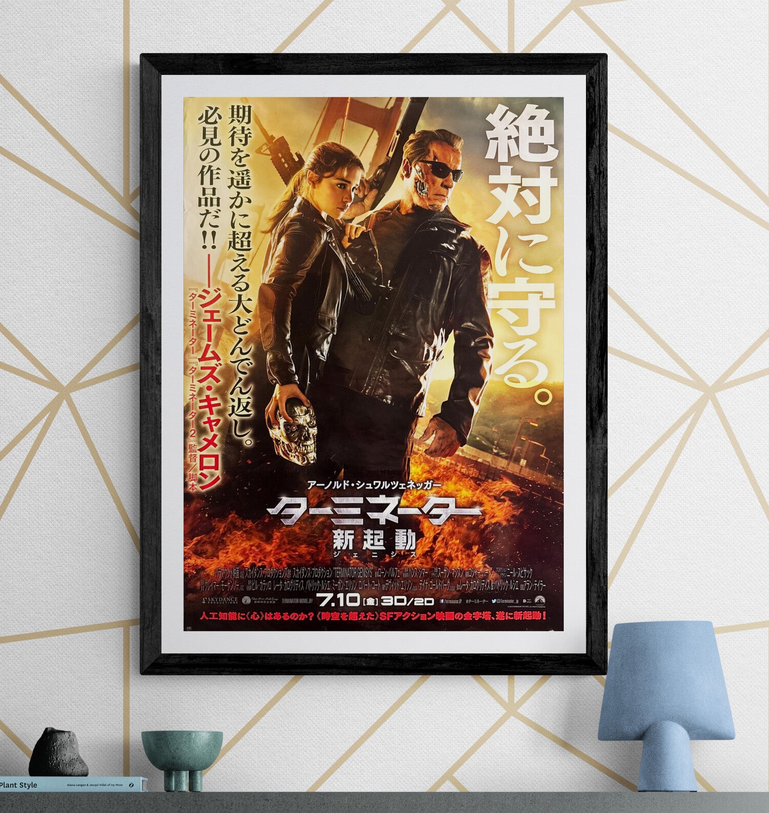 This is an original Japanese B2 theatrical poster printed in 2015 for the first Japanese cinema release of Terminator Genisys (ターミネーター:新起動/ジェニシス), with the release date 7.10 printed at the bottom of the design. Directed by Alan Taylor, this fifth entry in the Terminator franchise returns Arnold Schwarzenegger to the role that defined him—reframed here as a guardian figure protecting a new timeline’s Sarah Connor.