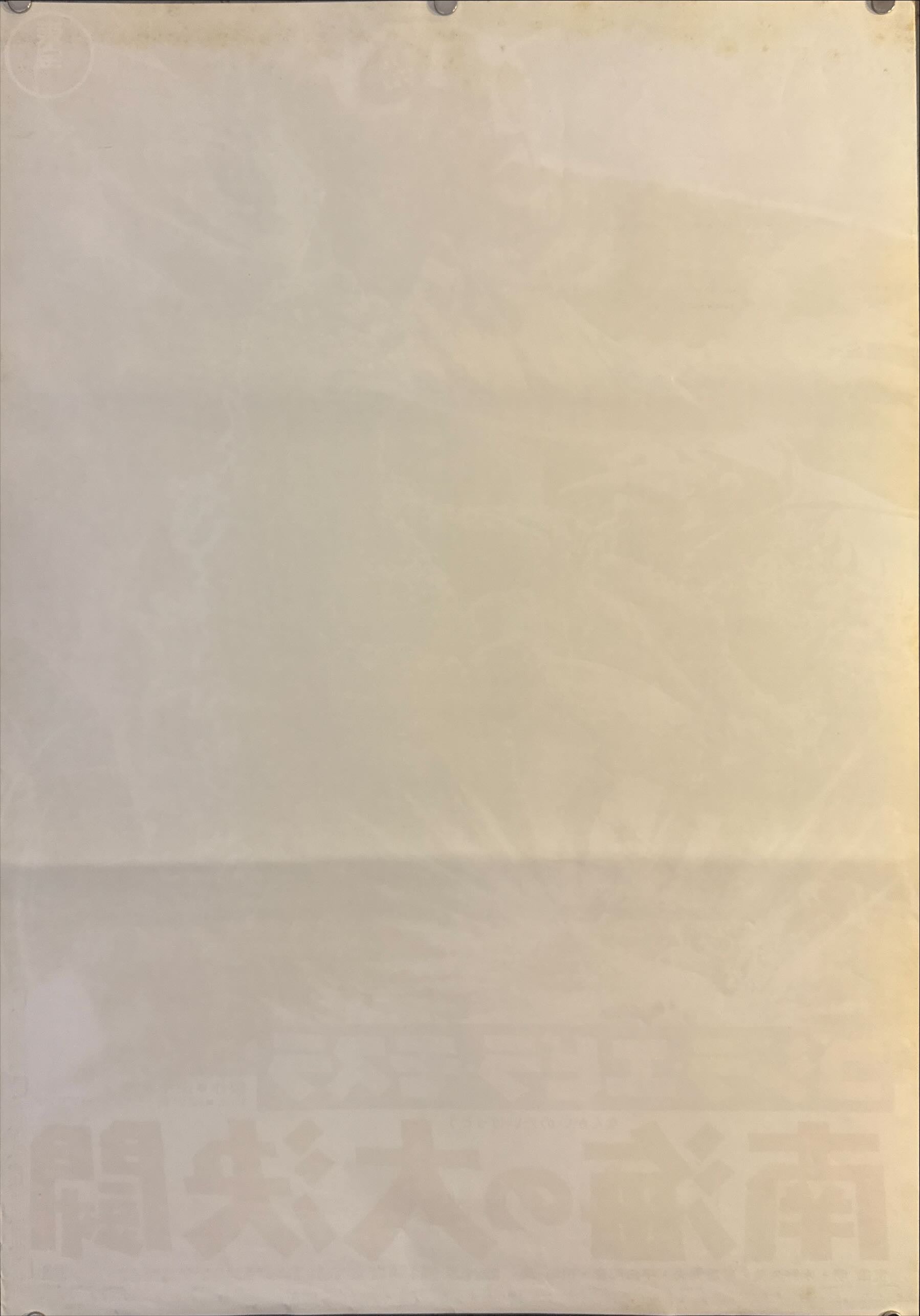 This is an original Japanese B2 poster printed in 1971 for the domestic re-release of Ebirah, Horror of the Deep (Japan, 1966)—also known in Japan as Godzilla, Ebirah, Mothra: Big Duel in the South Seas—directed by Jun Fukuda for Toho, with special effects from the Tsuburaya team. 1970s Toho revival sheets are highly collectible.