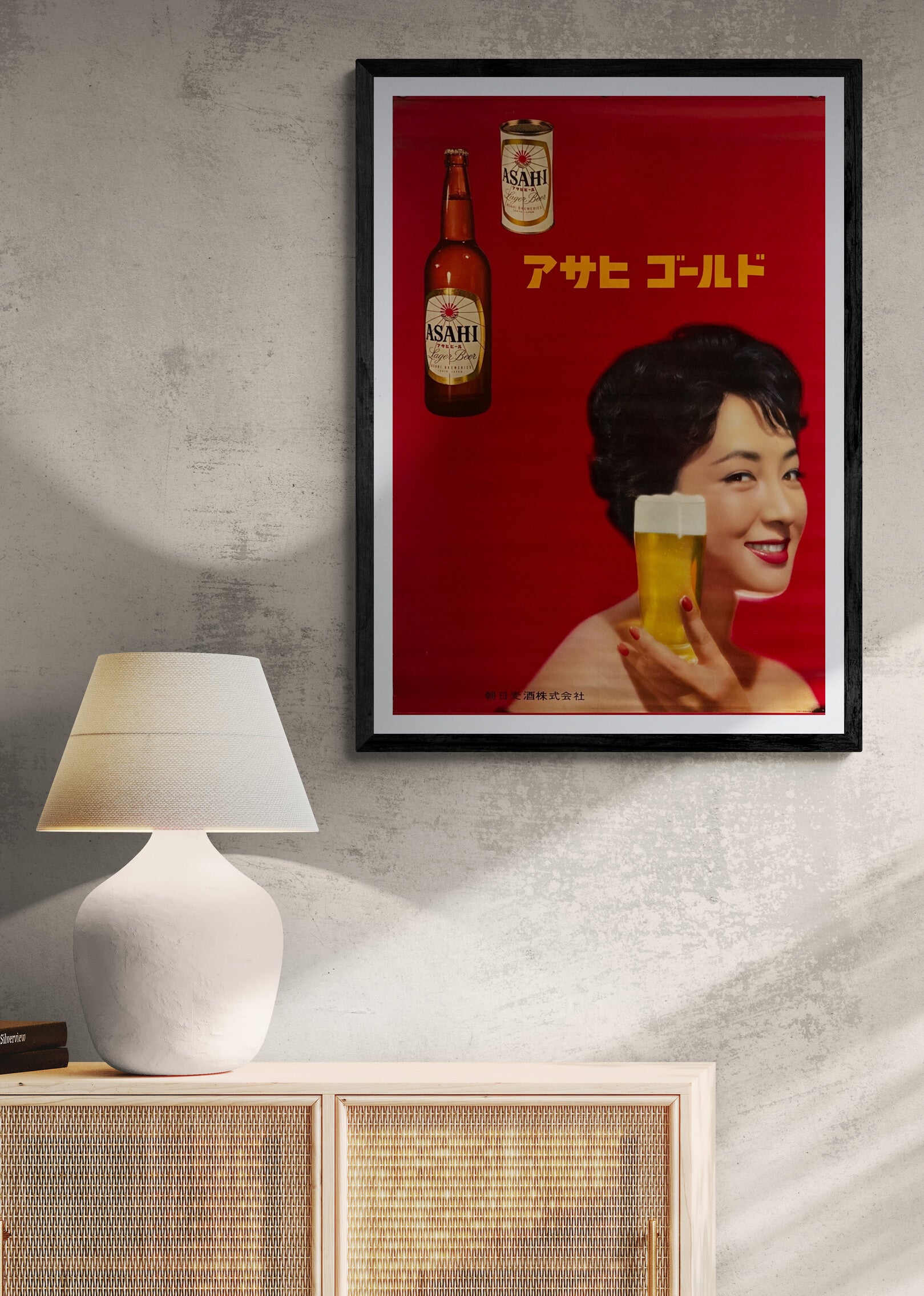 • Original Japanese B2 (51 × 73 cm) advert for Asahi Gold, c.1958–1962.