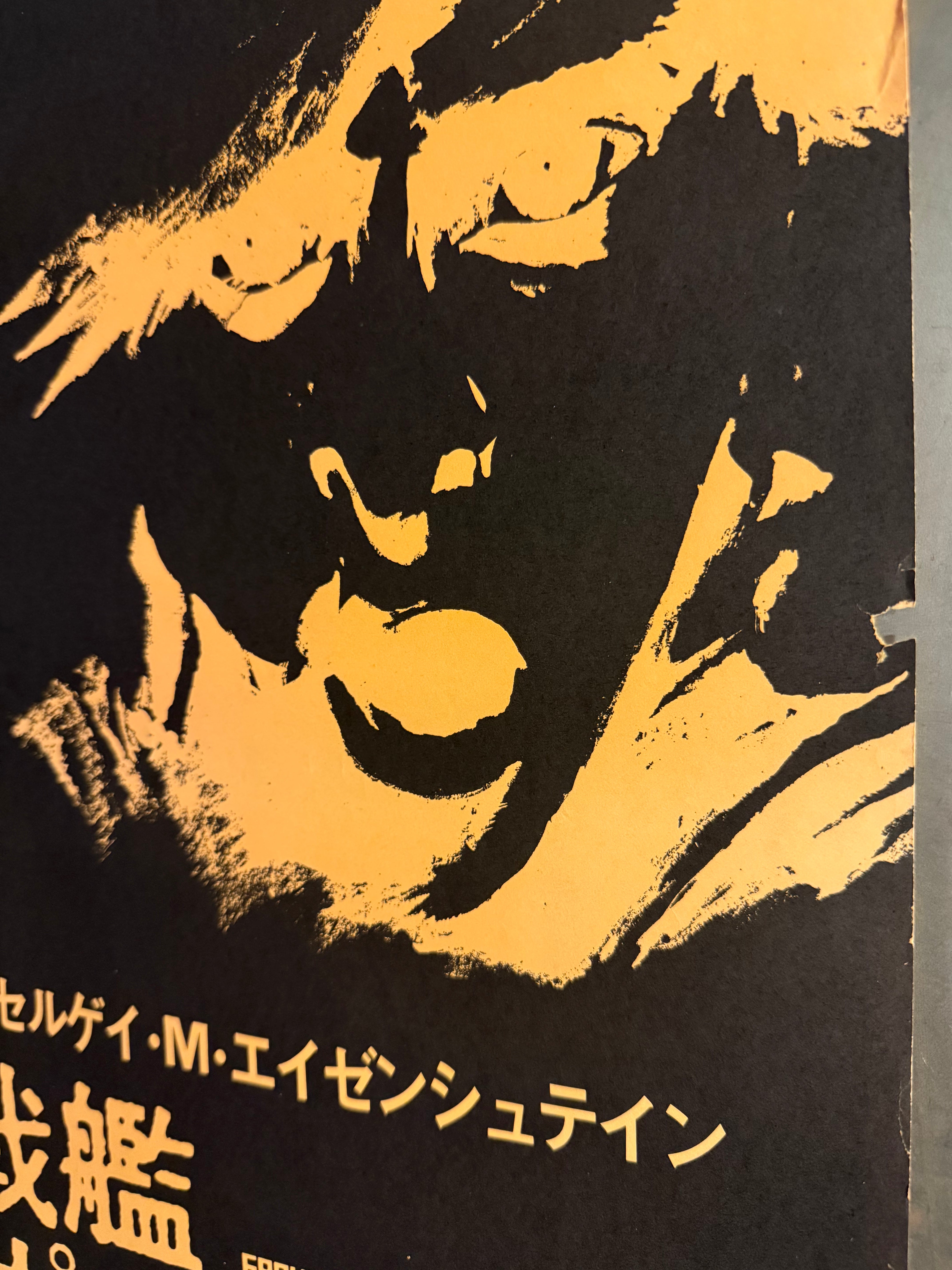 This is an original Japanese B2 theatrical poster printed for the 1977 revival re-release of Sergei M. Eisenstein’s silent-era masterpiece Battleship Potemkin (戦艦ポチョムキン).