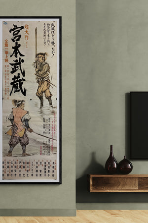 Imagine two B2-Size Posters stacked on top of each other creating a long eye-catching image! Together this tall and slender Japanese STB format stands 5 feet tall measuring at 20 x 29 inches known as a Tatekan or Tatsumi Poster which translates to a standing or signboard poster uniquely available only in Japan.