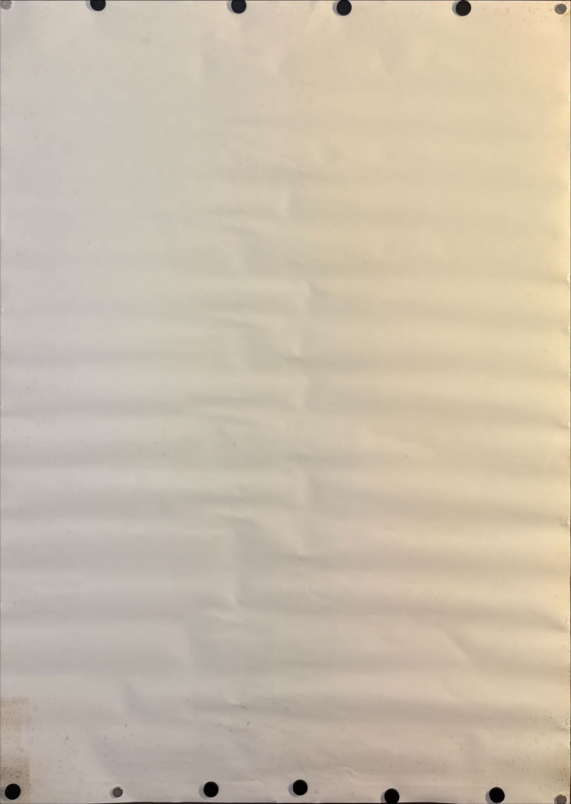 Very Good. The image area is clean with strong, unfaded colour and excellent gloss. There is scattered age‑related foxing and light toning visible in the white background, particularly along the upper border and outer margins (see close‑up photos), plus minor edge wear and handling ripples from display. Please review all images (front and back); they show the exact poster for sale.