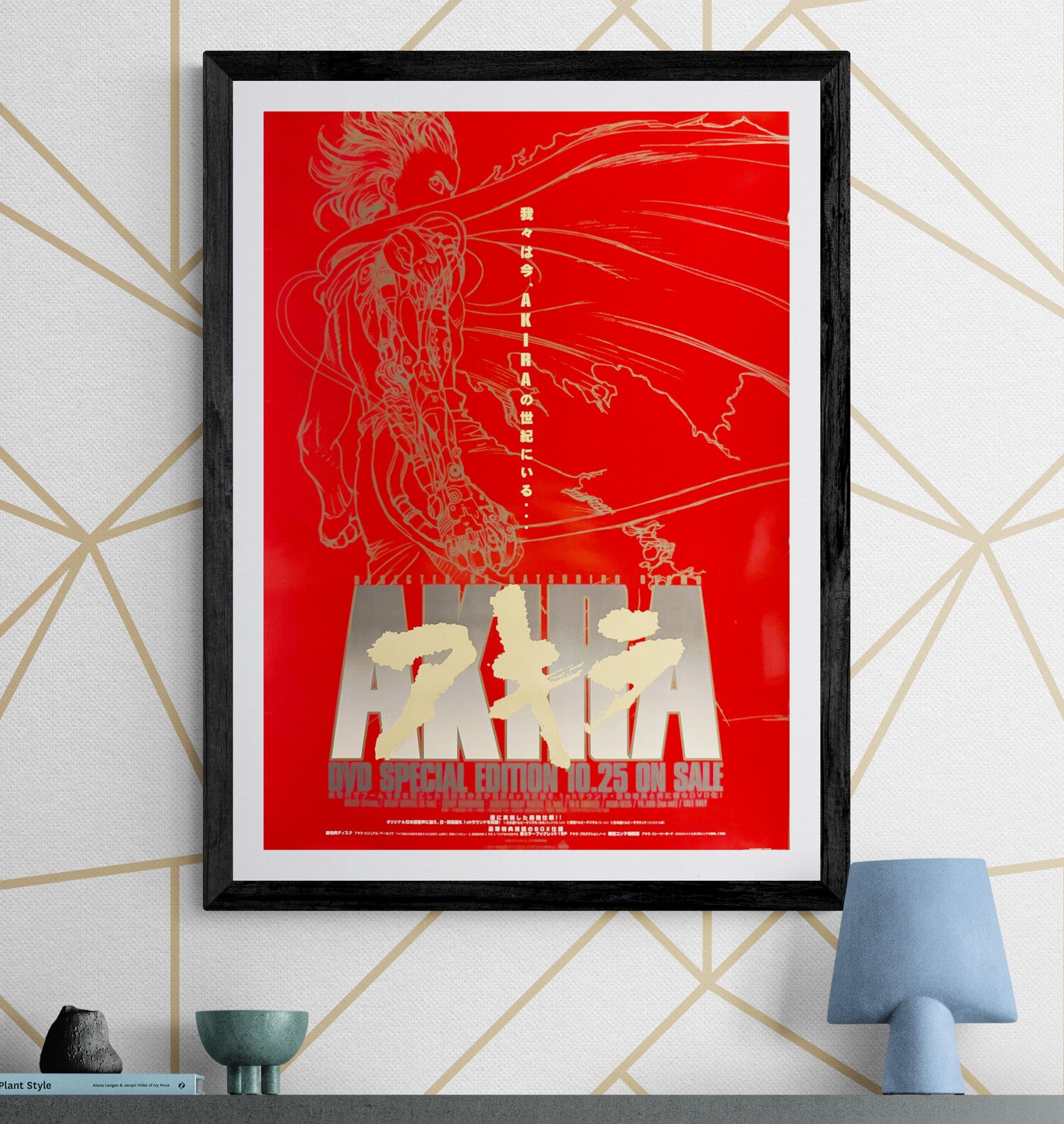 This is a striking and highly collectible design. The poster is dominated by a vivid red ground, over which a fine metallic line illustration of Tetsuo stretches across the upper field in an elegant, almost ghostly outline. The huge silver AKIRA title block anchors the lower half, overprinted with bold white Japanese lettering, while the vertical copy through the centre and the “DVD SPECIAL EDITION 10.25 ON SALE” line make its purpose unmistakable. The design is exceptionally minimal, modern, and powerful—far more graphic than most theatrical Akira posters—and has a strong gallery-like presence on the wall. It is an especially appealing format for collectors because it captures the franchise in a sleek, early-2000s promotional style while still retaining the unmistakable visual world of Otomo’s masterpiece.