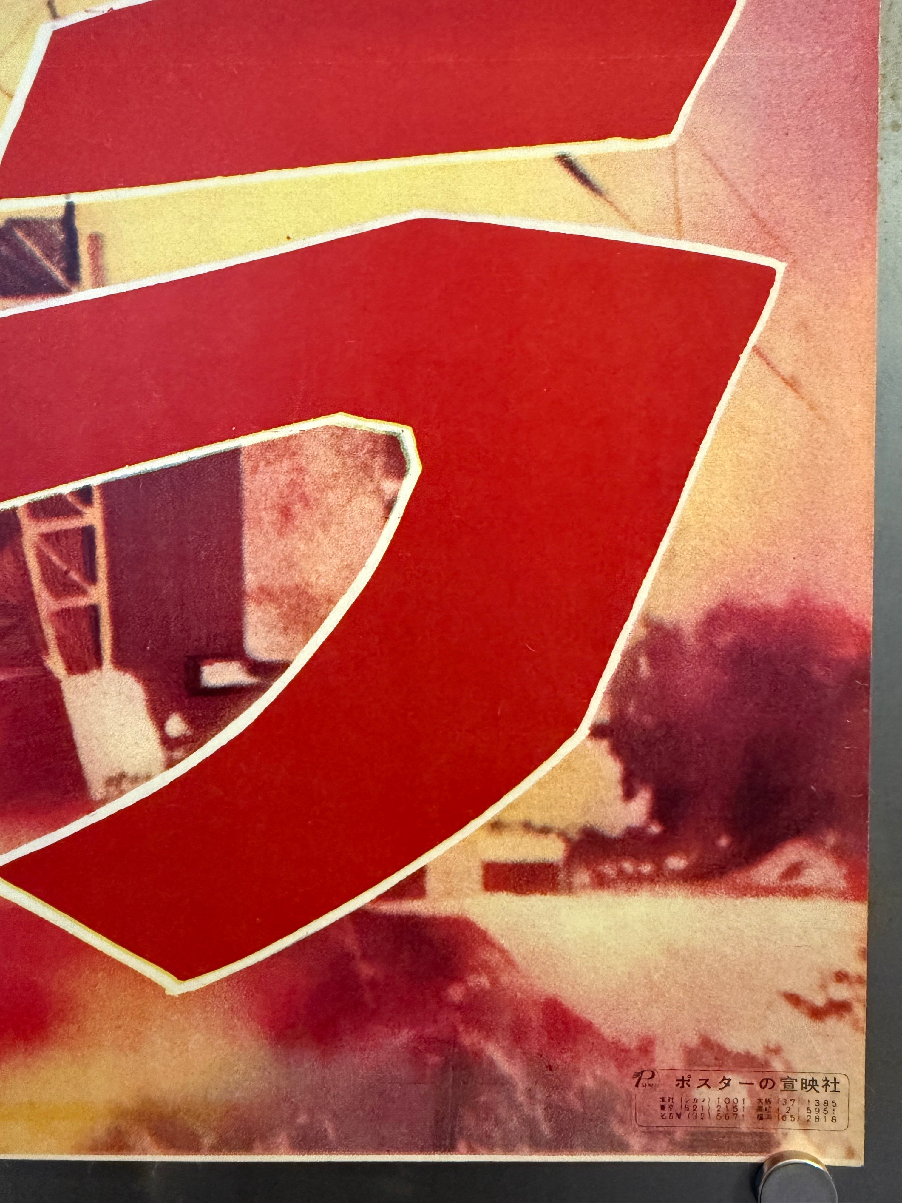 Near Mint on conservation washi backing. Colours richly saturated with no notable fading. Original central fold now smoothly supported; tiny former tear at lower margin and minute edge stresses expertly stabilised using museum methods. Light, normal handling and faint age toning to verso only, including an old exhibitor tape mark now fully secured under the backing. No significant paper loss; overall presentation is crisp, vibrant and ready to frame. Please review the provided photos (front and back) — they show the exact poster offered.