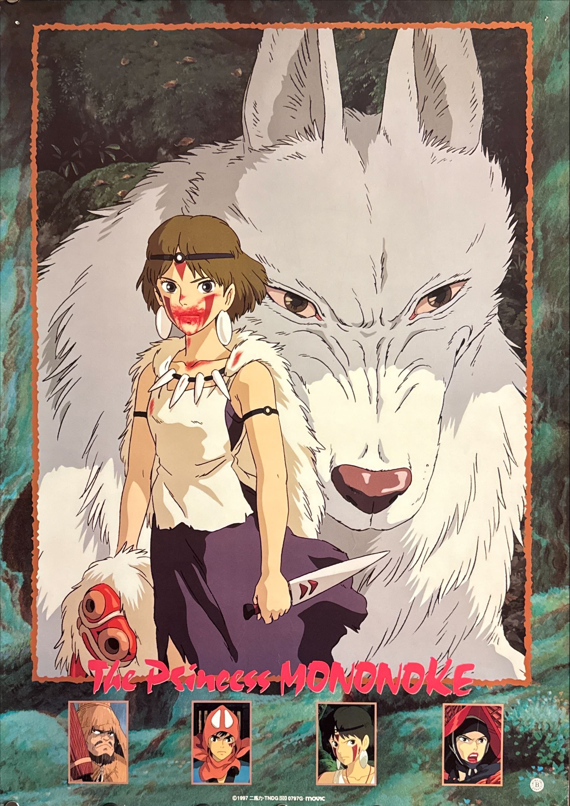 This is an original Japanese poster printed in 1997 for the release of Princess Mononoke (もののけ姫).