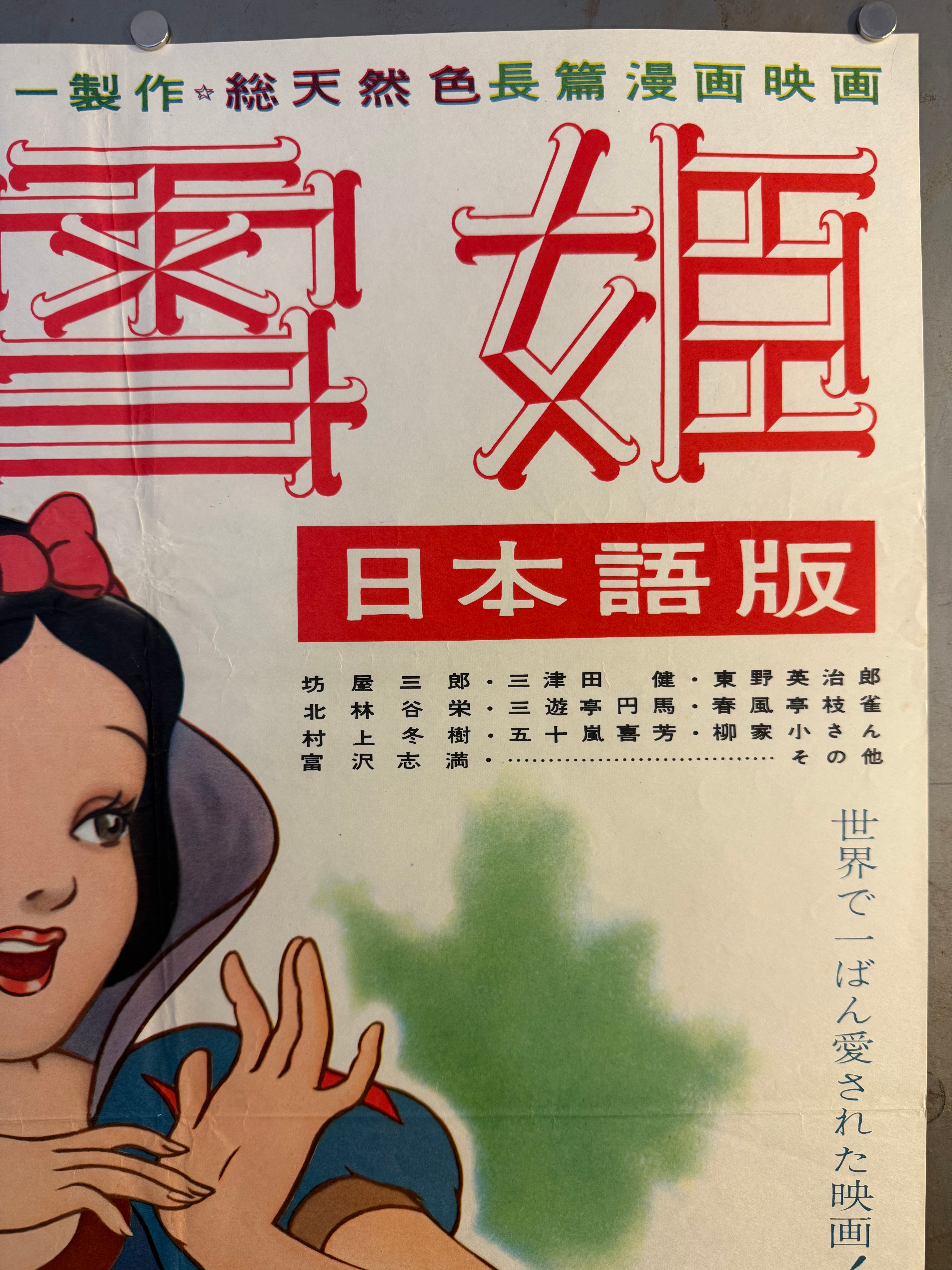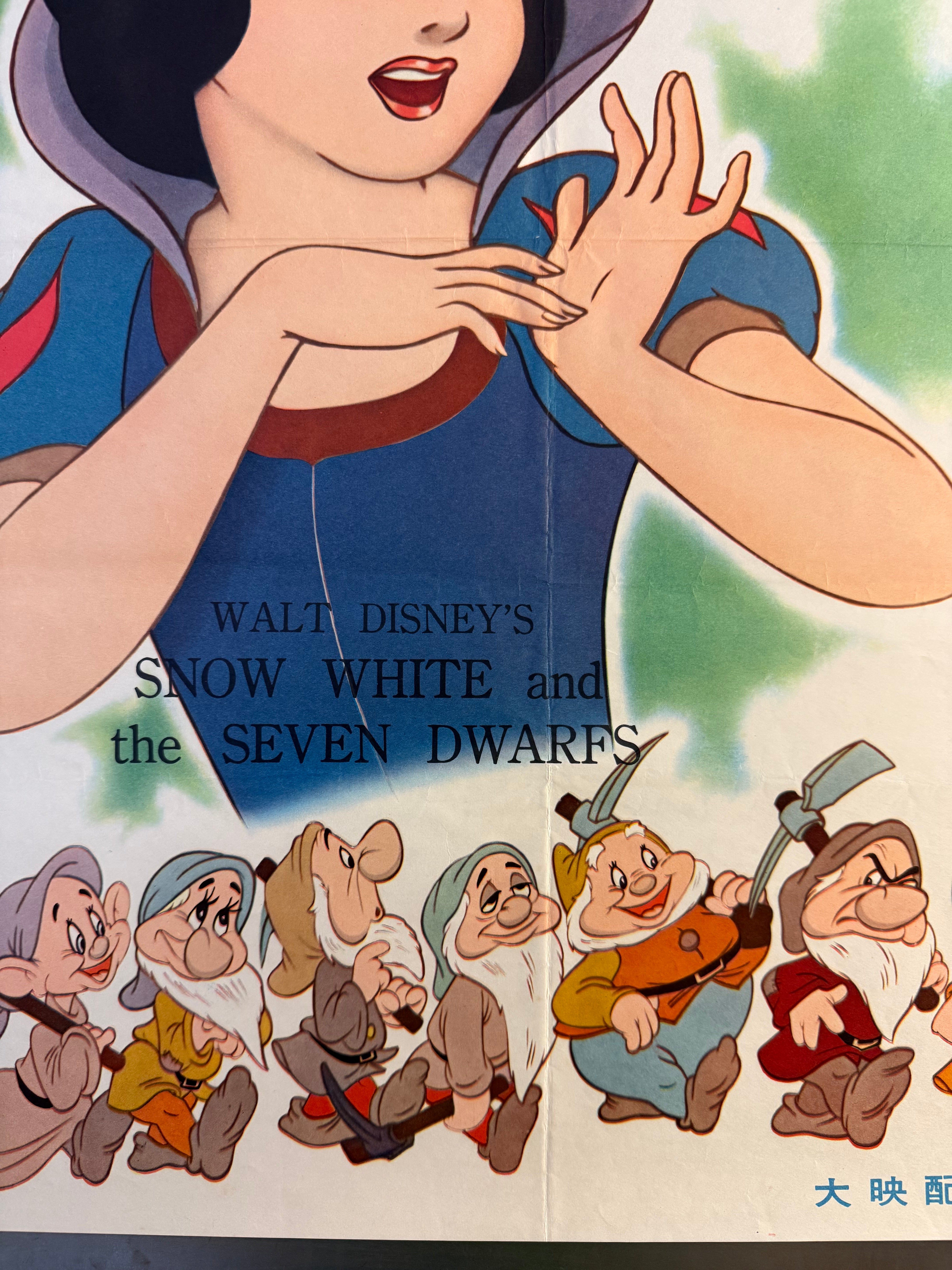 “Snow White and the Seven Dwarfs” (白雪姫), Original Japanese Re-Release Movie Poster (1958) Ultra Rare B2 (approx. 51 × 73 cm) — Daiei Distribution (大映配給) — Japanese-Language Version (日本語版) — Unrestored, Very Good / Excellent (G)