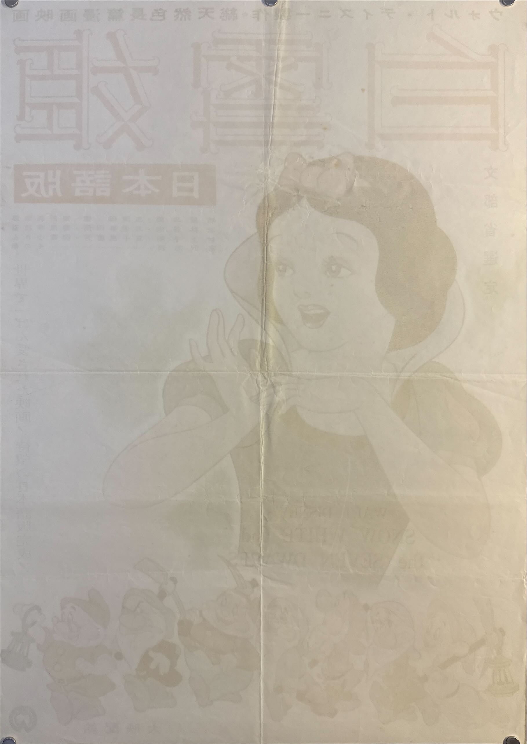 Daiei’s involvement matters. Japanese sources describe Daiei’s early role in reintroducing Disney features to Japanese audiences in the immediate post‑war period (including Snow White), and this sheet’s bold 大映配給 footer functions as a period “fingerprint” tying it directly to that distribution history.