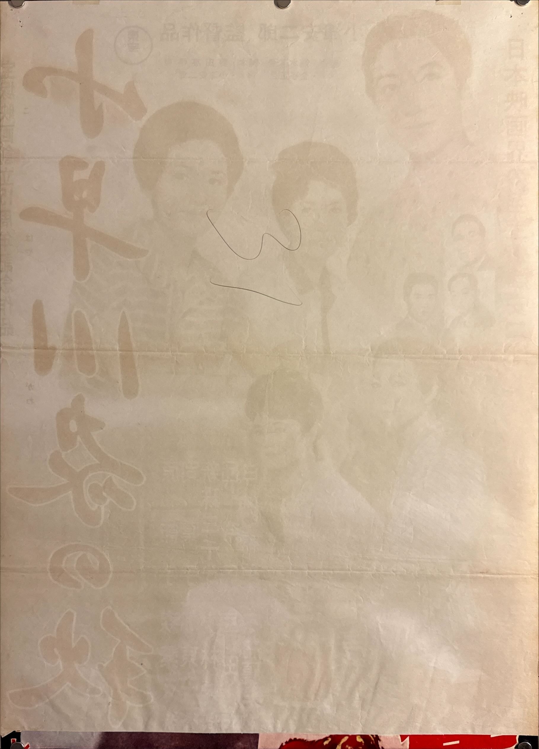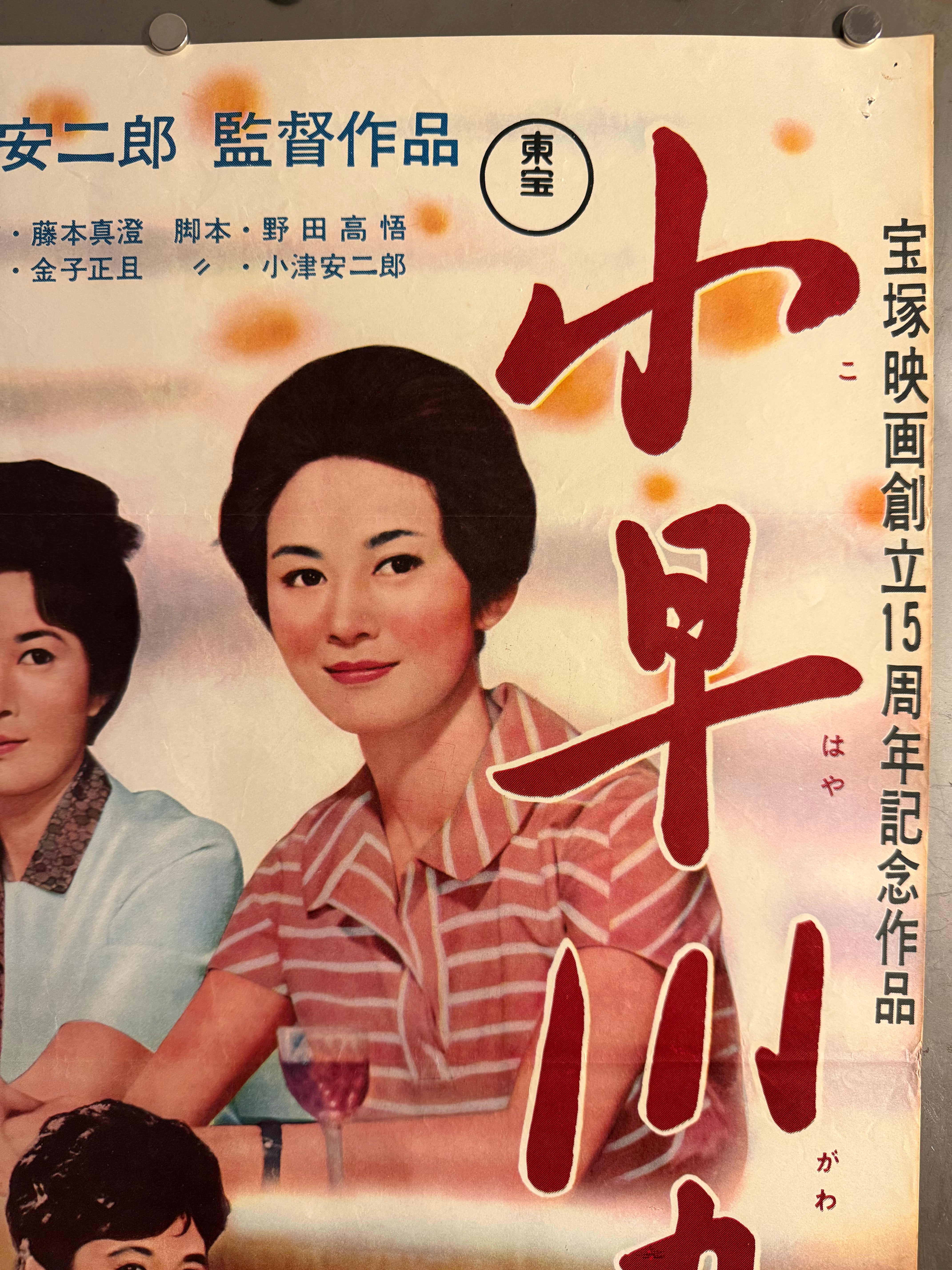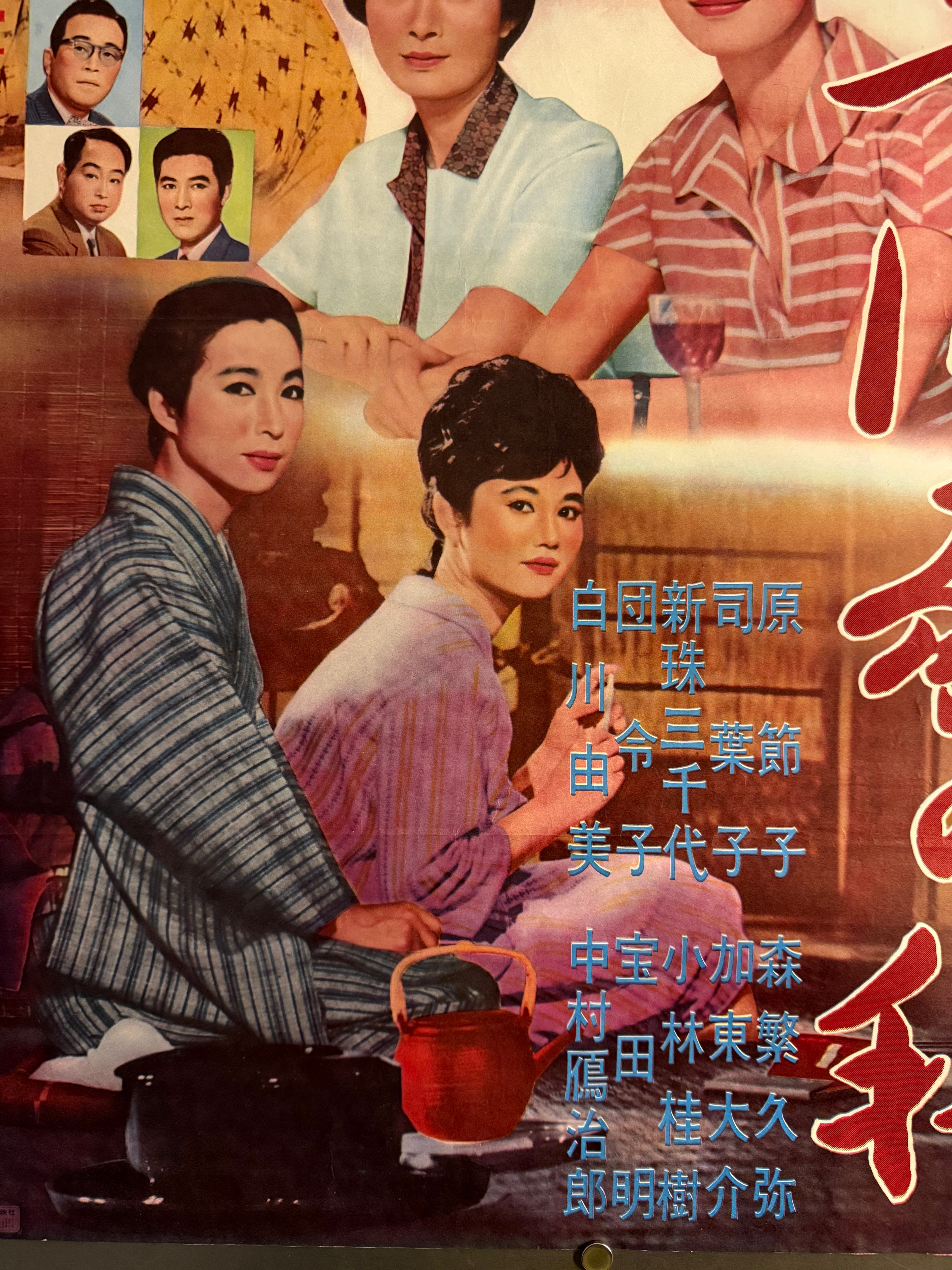 This is an original Japanese B2 movie poster printed in 1961 for the first Japanese release of Yasujirō Ozu’s The End of Summer (小早川家の秋). This is the ultra-rare Chihō-ban (地方版) / regional-issue style—produced in smaller quantities for provincial circulation and far less commonly encountered today than the standard head-office designs. The sheet is a theatre-used survivor, with period handling characteristics consistent with original cinema display and storage.