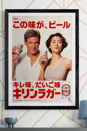 “KIRIN LAGER BEER × HARRISON FORD × MIHO NAKAYAMA”, Original Release Japanese Promotional Poster 1995, B2 Size (51 × 73 cm) Q50