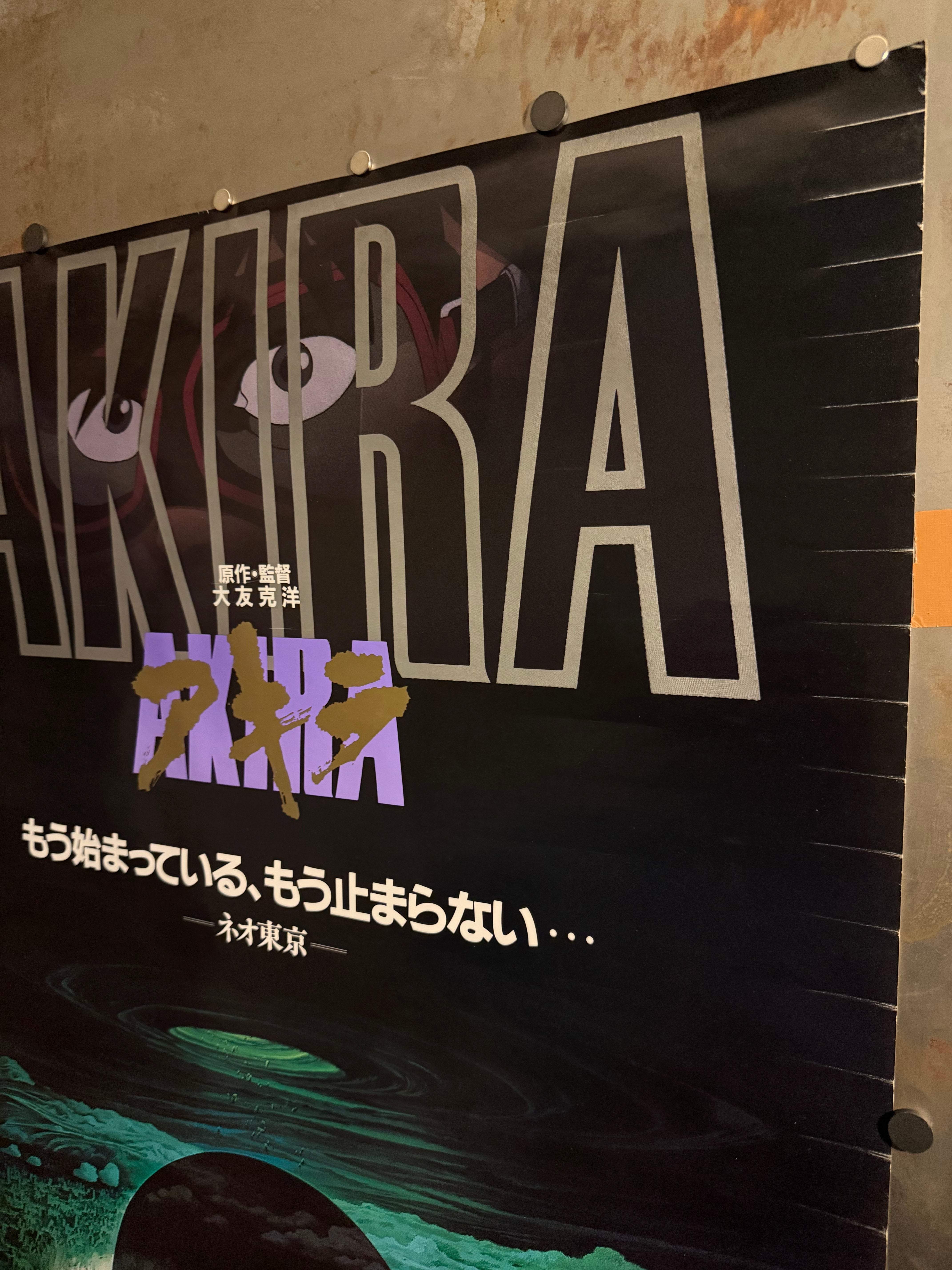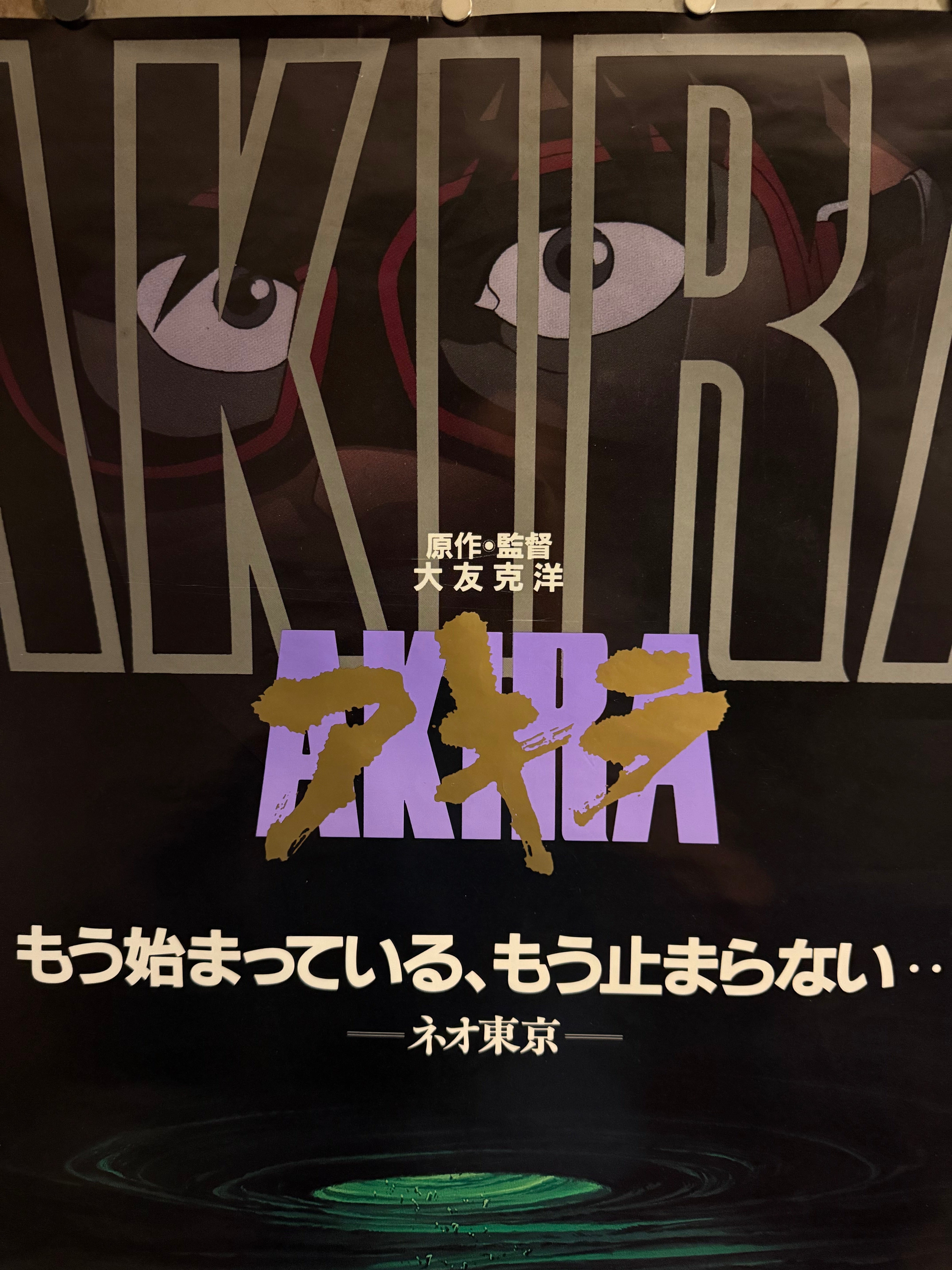 This is an original Japanese B1 poster printed in 1987 for the first release of Akira (アキラ), Katsuhiro Otomo’s groundbreaking animated cyberpunk masterpiece.