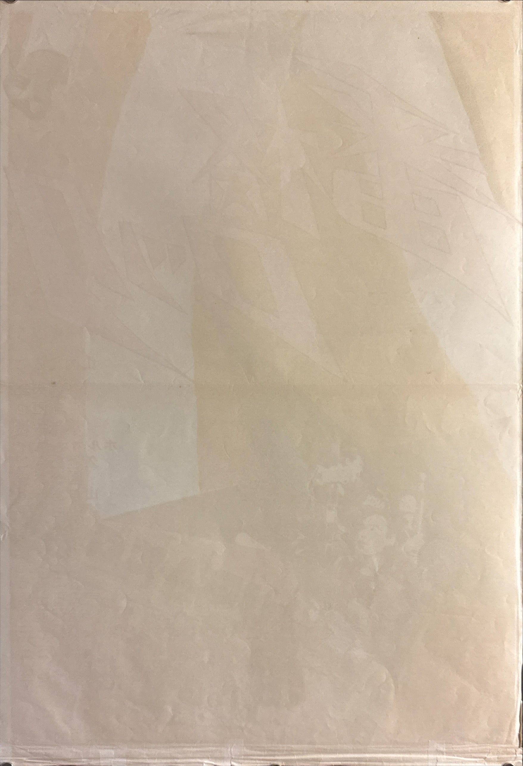 The very bottom edge of the lower panel has small tears repaired with archival tape on the verso. These repairs are discreet, located at the lower edge, and do not affect the central artwork. Once framed, this poster will display excellently.