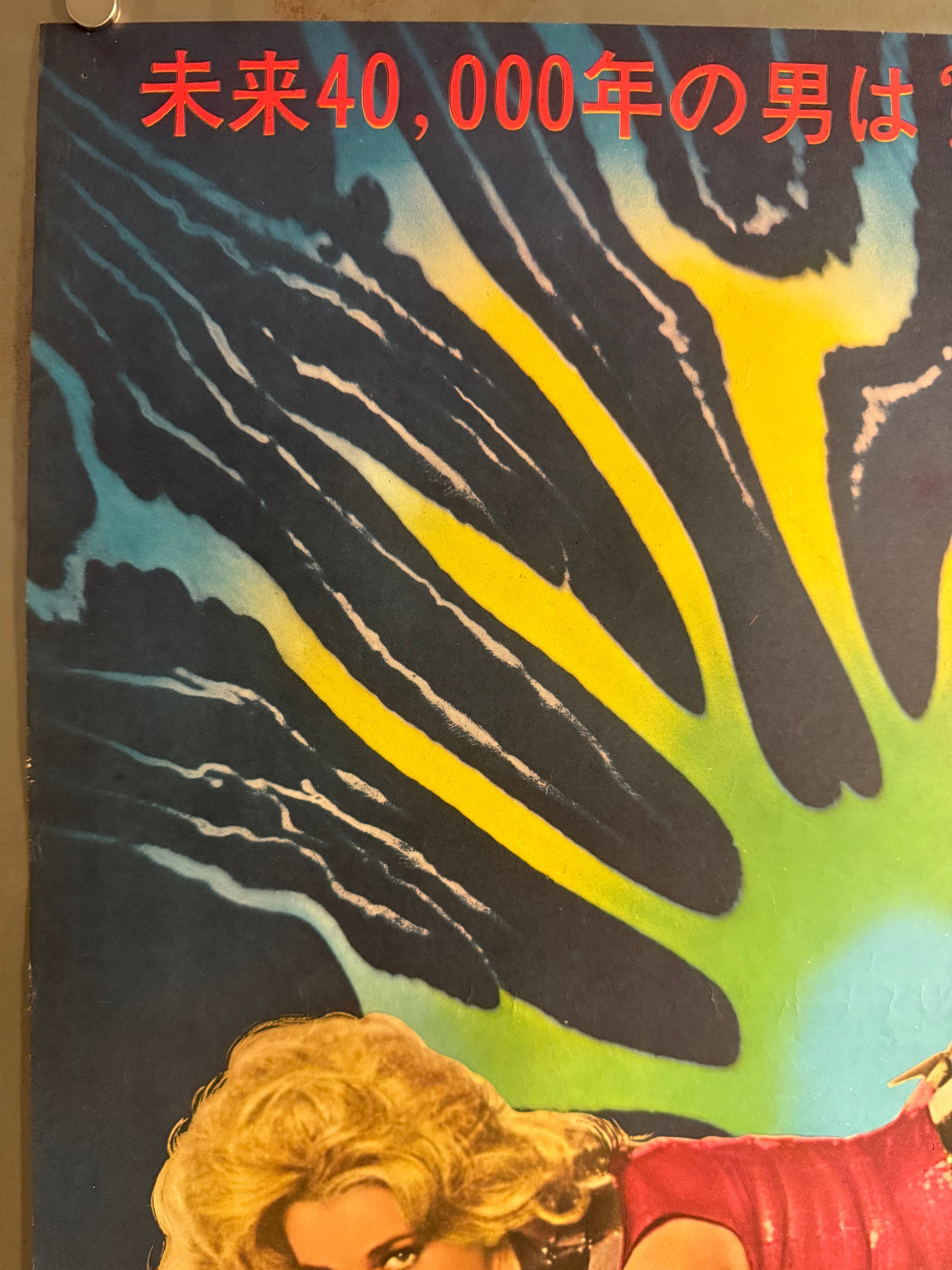 Japanese B2 posters are scarcer than standard international one‑sheets, and Barbarella is a title with consistently intense collector demand—especially this “Floating Jane Fonda” variant, which surfaces only infrequently and is widely regarded as the definitive Japanese campaign image. Condition is excellent: the poster displays beautifully with strong colour and clean, sharp graphics. Only very minor signs of handling are visible on close inspection (light edge wear and a tiny pinhole near the upper‑right margin can be seen in the photos; the reverse shows light, typical storage/age characteristics). Please review the photos carefully, as they show the exact poster offered.