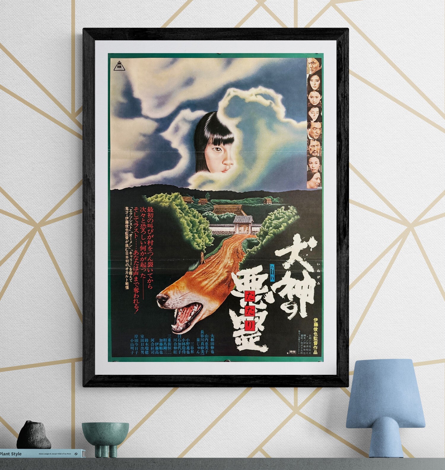 This is an original Japanese B2 poster printed in 1977 for the first domestic theatrical release of Curse of the Dog God (犬神の悪霊〈たたり〉), directed by Shun’ya Itō and released in Japan by Toei. First-issue Japanese posters for Itō’s occult village horror are sought after by collectors of 1970s J-horror and folk-mystery cinema.