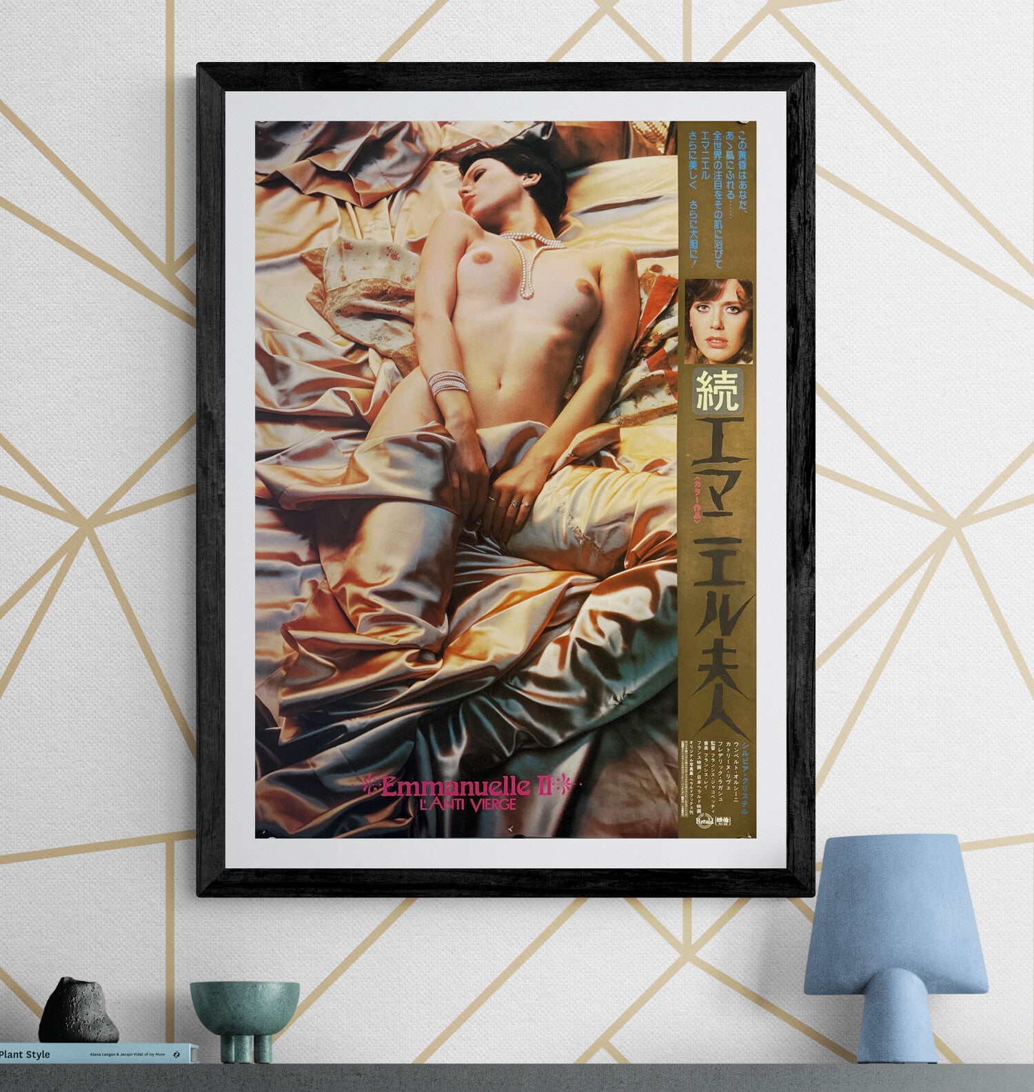 This is an original Japanese B2 poster printed in 1975 for the first domestic theatrical release of Emmanuelle II (France/Italy, 1975), directed by Francis Giacobetti and starring Sylvia Kristel and Umberto Orsini. Japanese first-issue country sheets for the Emmanuelle phenomenon are highly collectible.