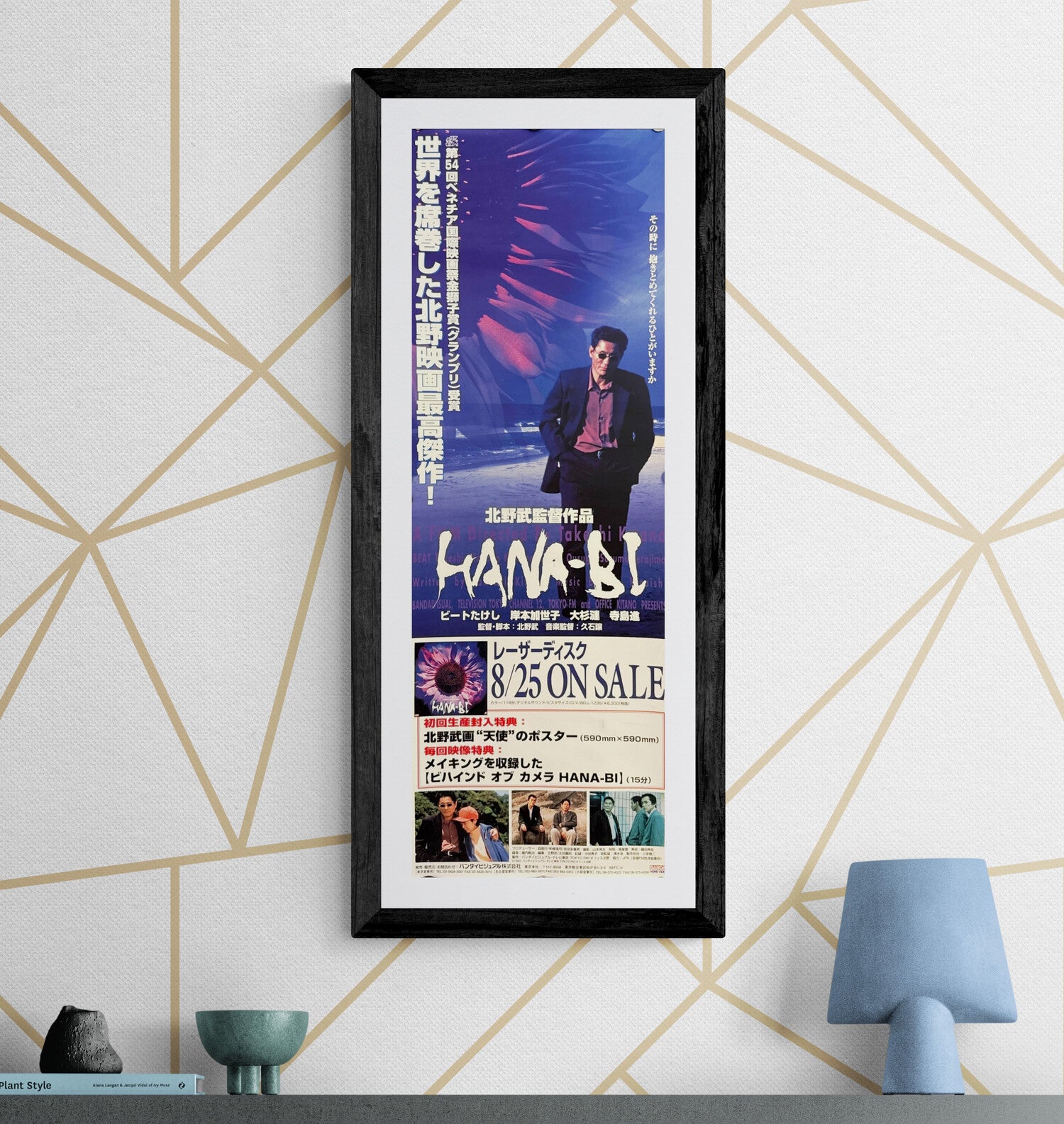 This is an original Japanese speed-size poster issued in 1998 to promote the domestic LaserDisc release of Takeshi Kitano’s HANA-BI (1997)—winner of the Golden Lion at the 54th Venice International Film Festival. Printed in the tall, narrow format used for shop displays and theatre lobby cases, speed posters were produced in much smaller numbers than standard B2s and survived far less often, making them highly collectible.