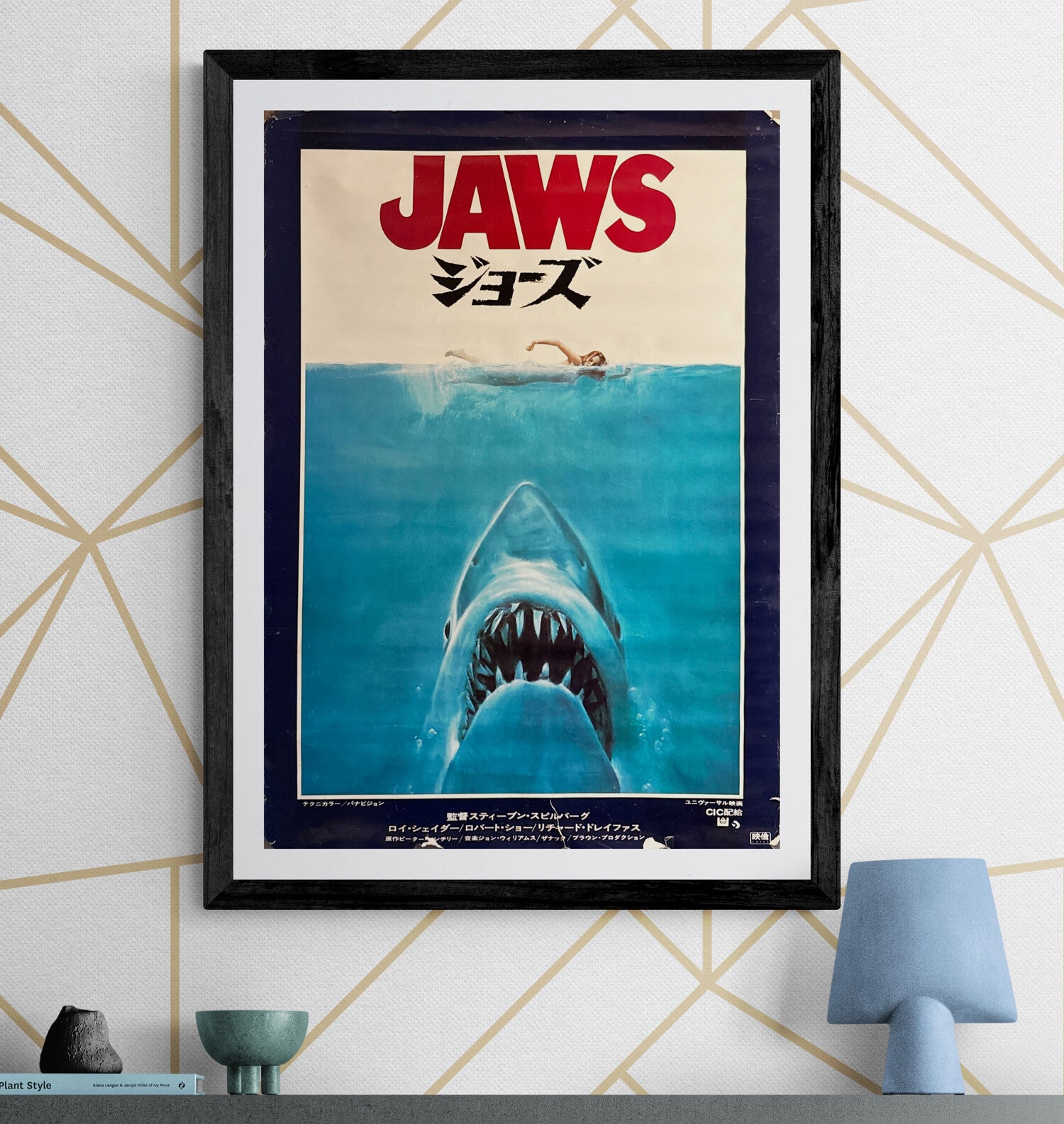 This is an original Japanese poster printed in 1975 for the first release of Jaws.