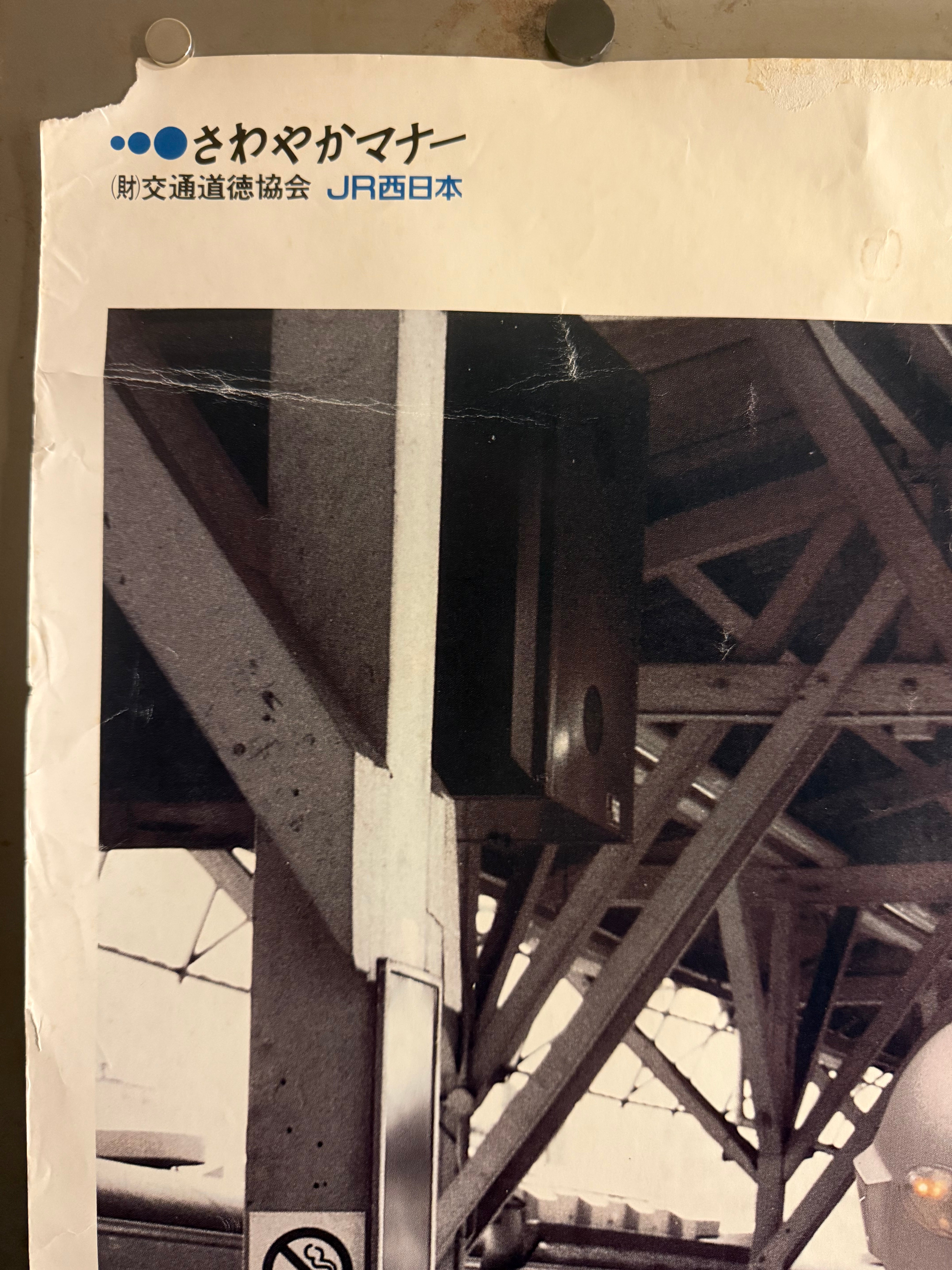 Most railway‑display posters do not survive cleanly—common issues include heavy creasing, tape scars, tears, staining, and missing sections from removal. Even with honest campaign wear, a complete, displayable Ultraman × railway manners B1 like this is a highly collectible piece of Japanese pop‑culture ephemera.