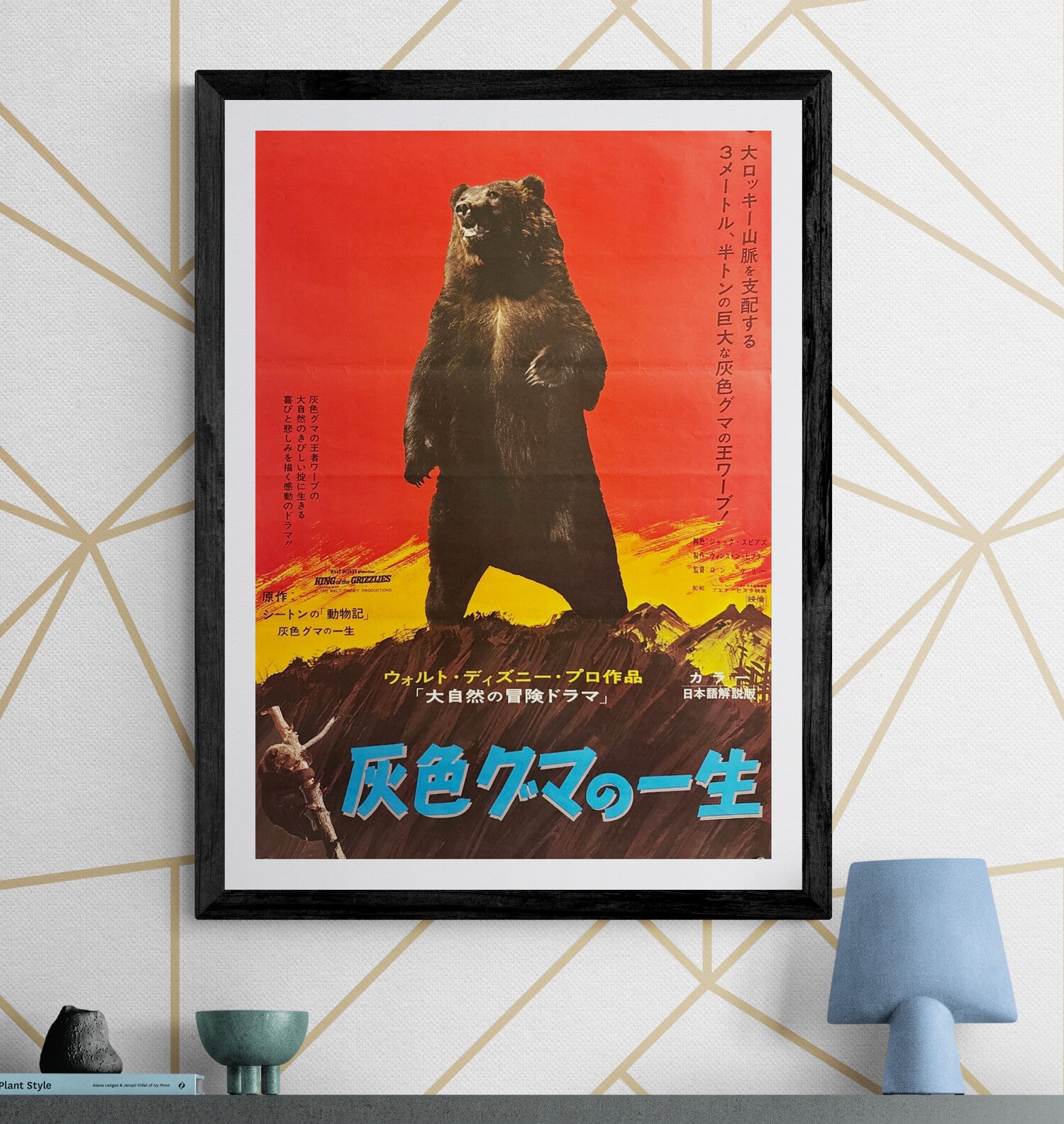 This is an original Japanese B2 poster issued in Japan for King of the Grizzlies (1970), released in Japanese as 灰色グマの一生. A classic Walt Disney live-action nature-adventure drama, the film follows the life and legend of a great grizzly—an epic wilderness story rooted in the tradition of Disney’s best outdoor cinema. The Japanese text on the sheet highlights the scale of the “king” bear (a huge Rocky Mountain grizzly) and frames it as a sweeping adventure of the natural world, rich in both beauty and danger.