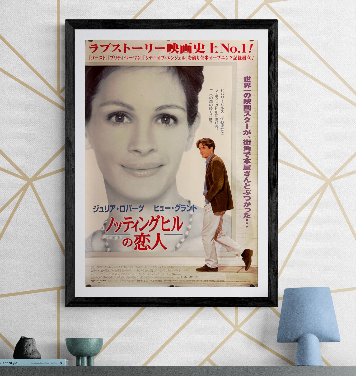 This is an original Japanese B2 theatrical poster printed in 1999 for the first Japanese release of Notting Hill (ノッティングヒルの恋人), Roger Michell’s beloved romantic comedy starring Julia Roberts and Hugh Grant. Written by Richard Curtis, the film became one of the defining late-’90s rom-coms—warm, witty, and built around the fantasy of an ordinary life colliding with global celebrity.