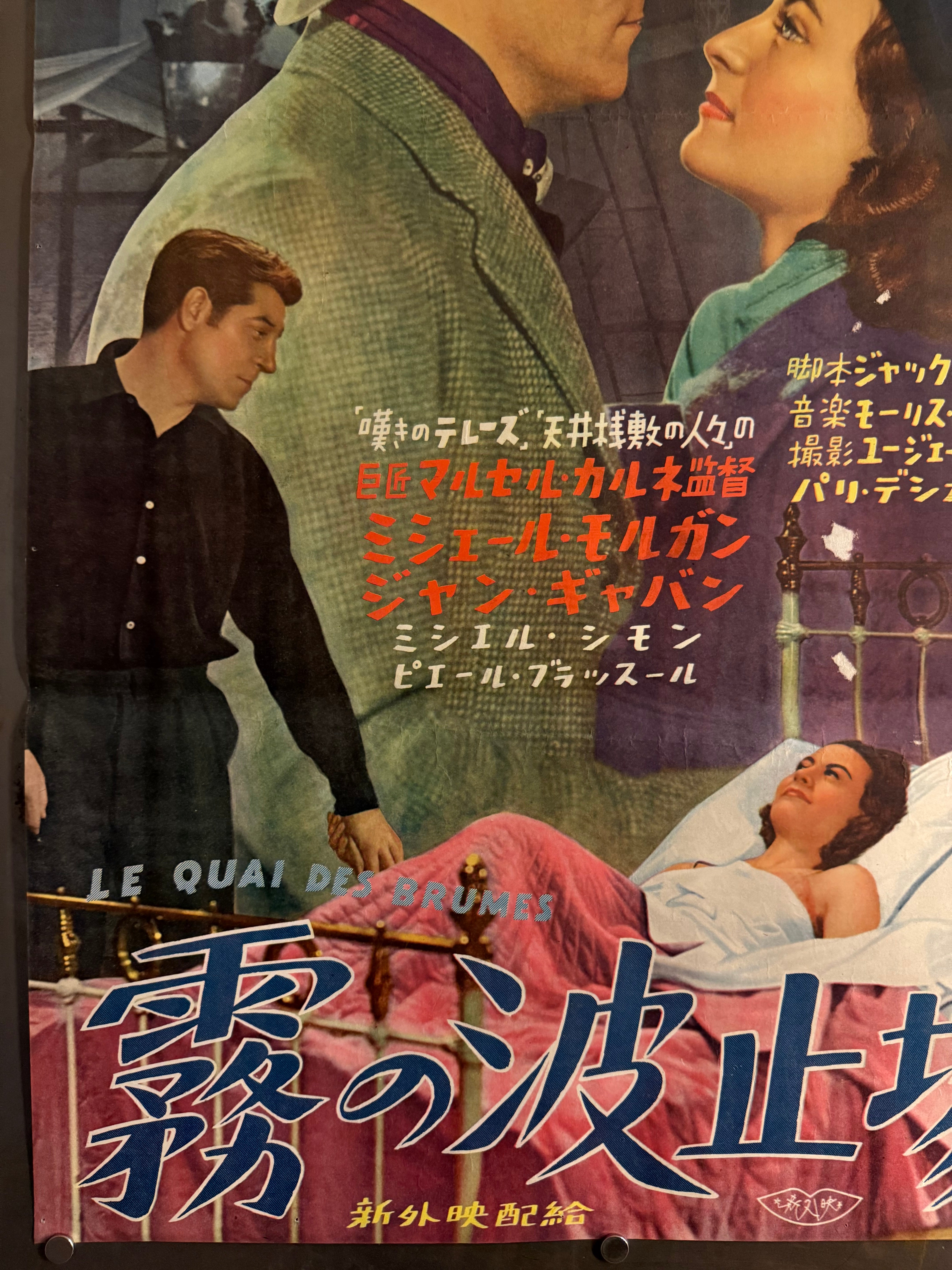 “Port of Shadows” (Le quai des brumes, 霧の波止場), Ultra‑Rare Original Japanese B2 First‑Release Poster — 1949 First Japanese Release (30 December 1949) — approx. 20.3 × 28.7 in (51.5 × 72.8 cm) P260