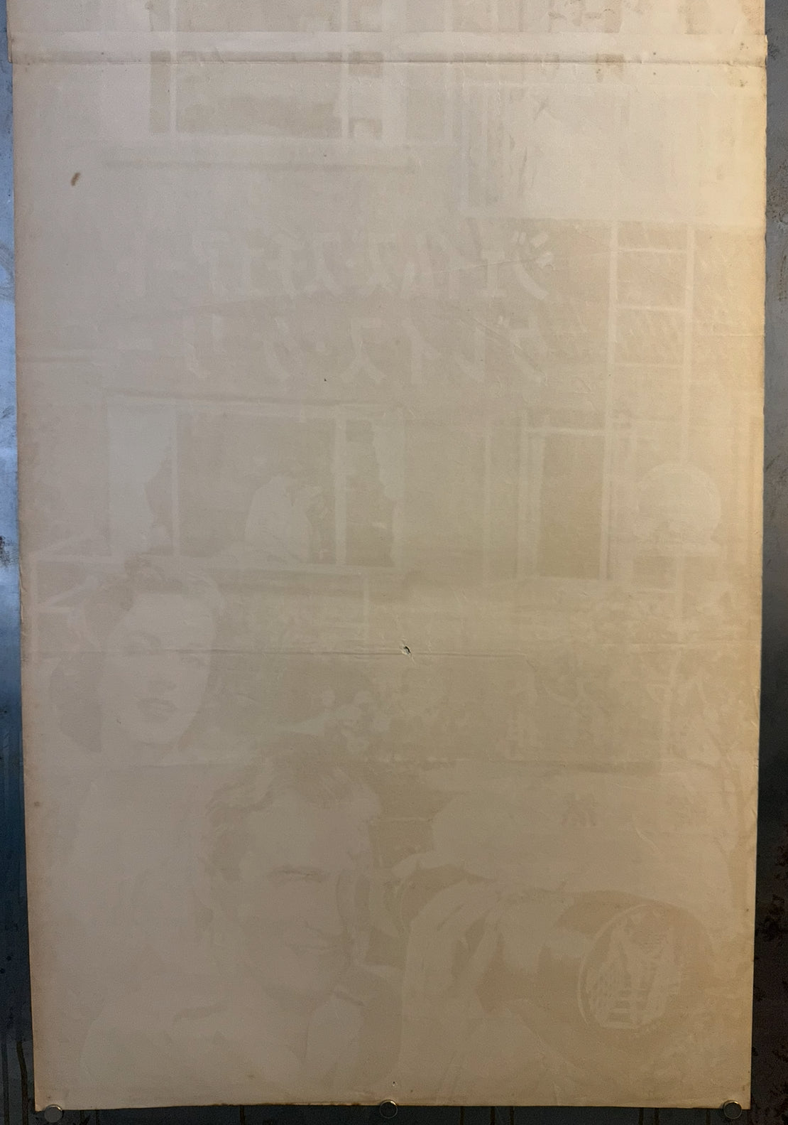 Excellent, and genuinely astonishing for a 1950s STB. This exact example presents beautifully, with rich colour, strong saturation, and exceptional freshness to the brick façade, titles, and portrait imagery. The top and bottom sections have been pasted together, which is entirely normal for surviving STBs and wholly in keeping with how the format was originally displayed. There are tiny pinholes to each corner, plus one small hole in the brickwork near the portraits / billing of the two stars; it is minor and barely noticeable unless inspected closely. The red katakana ビスタビジョン panel is an applied element and remains in place, adding period character and authenticity. Aside from that, only light, honest age wear is visible: very minor handling and storage impressions, a faint horizontal line where the sections meet, and slight edge and corner softness consistent with age. The reverse shows normal age toning and show-through. Overall, this is a phenomenal, museum-grade survivor of a format that almost never survived in this state. Please review the photos carefully, as they show the exact poster for sale.
