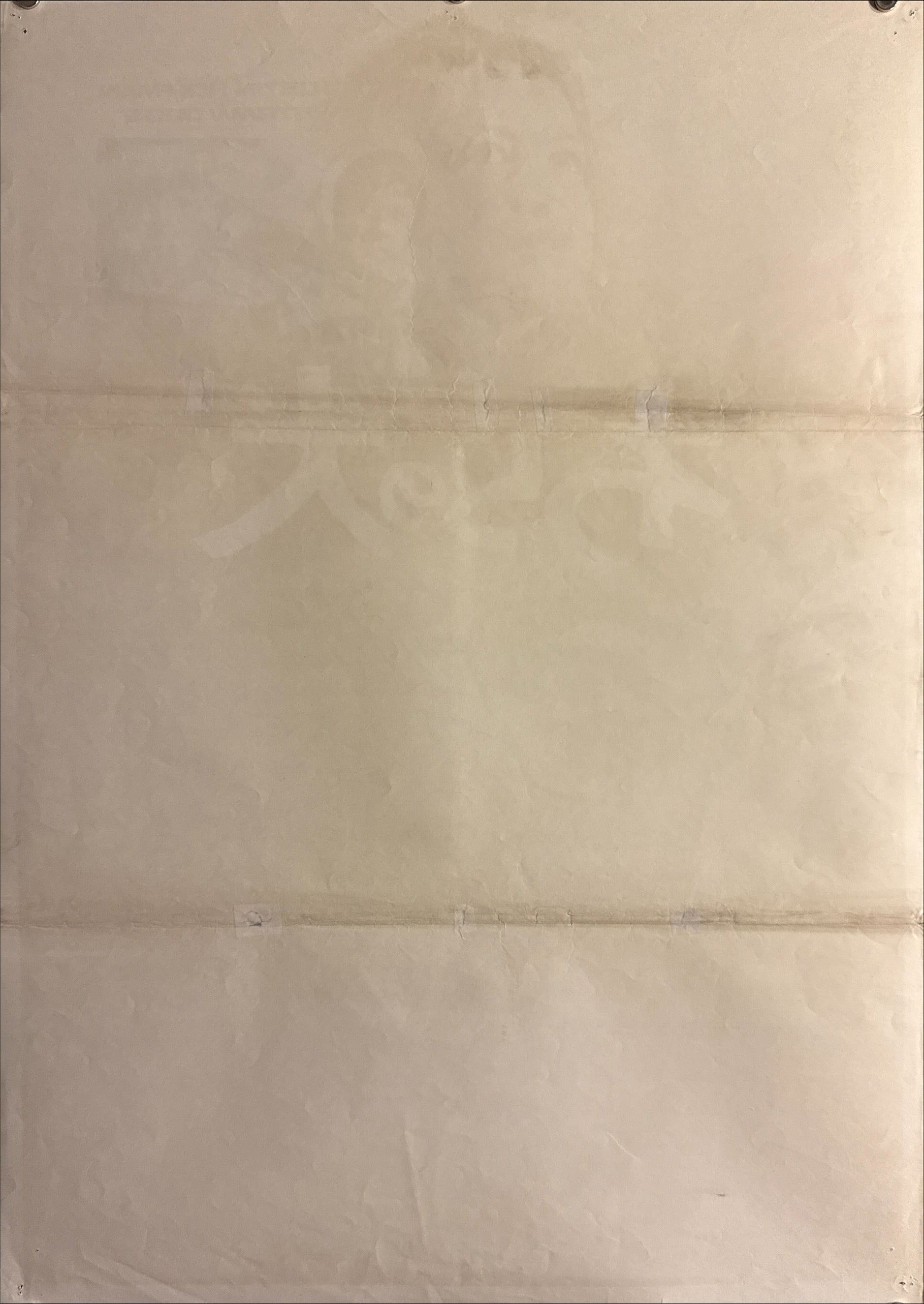 This Japanese poster is strikingly severe and highly effective. The design is dominated by a huge close-up of Dustin Hoffman’s face, rendered in warm, oppressive tones that immediately suggest unease and paranoia. Above him, smaller inset images of Susan George, the shotgun, and moments of threat and confrontation establish the film’s sexual tension and impending violence without overcrowding the composition. The large hand-brushed Japanese title わらの犬 across the centre gives the sheet tremendous impact, while the overall layout feels both elegant and menacing. It is an exceptionally strong and very displayable Japanese design for one of the great American thrillers of the period.