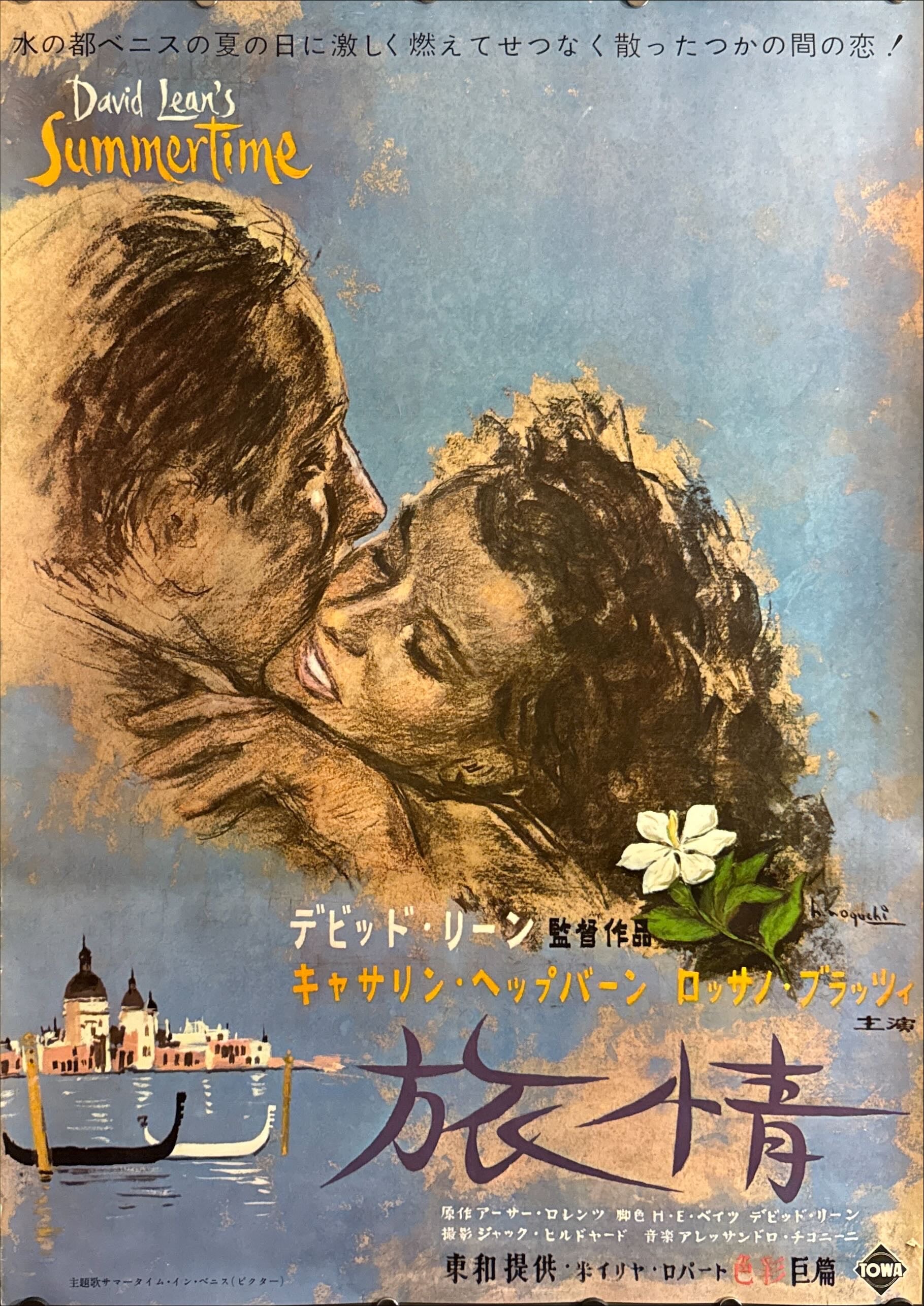 This is an original Japanese B2 theatrical poster printed in 1955 for the first release of Summertime (released in the UK as Summer Madness), David Lean’s luminous Technicolor romance set in Venice. Starring Katharine Hepburn and Rossano Brazzi, the film follows an American visitor whose summer holiday becomes an unexpectedly intense, bittersweet love story—one of Lean’s most elegant, emotionally restrained works.