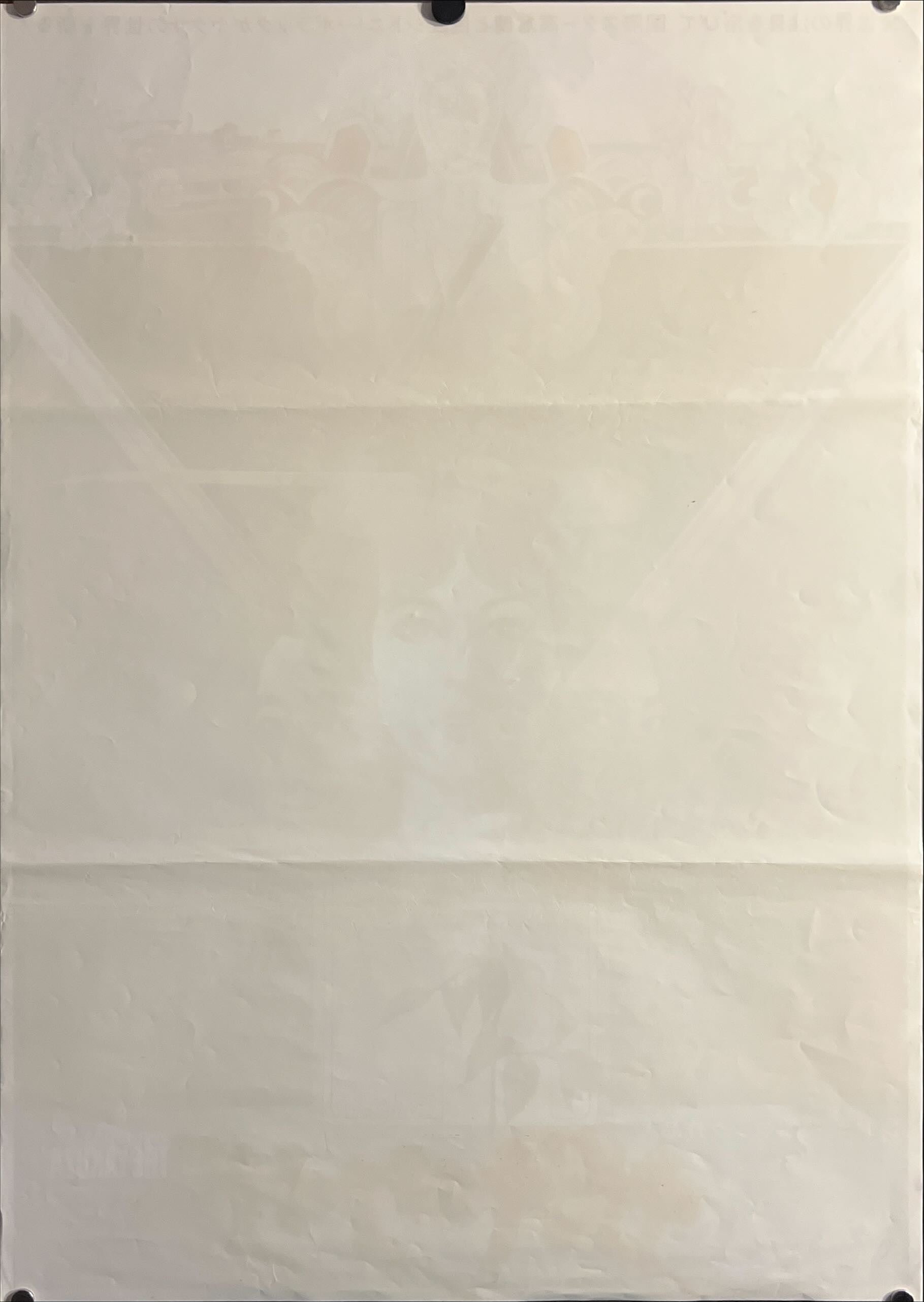 A stunning, design-forward Japanese one-sheet that feels closer to high-end graphic art than conventional film advertising. The composition is built around a bold, symmetrical “card” motif: Takakura and Mitchum appear locked in action at the top—gun and blade—while a central female figure holds a yellow rose, framed like an emblem of beauty amid violence. The surrounding decorative elements (including kendo-mask styling and stylised vignettes of pursuit and confrontation) reinforce a sense of ritual, honour, and danger. Across the bottom, the title 「ザ・ヤクザ」 slams in huge, blood-red brush lettering—an unforgettable typographic hit that makes this poster exceptionally frame-friendly. A true standout in Japanese 1970s crime-poster design.