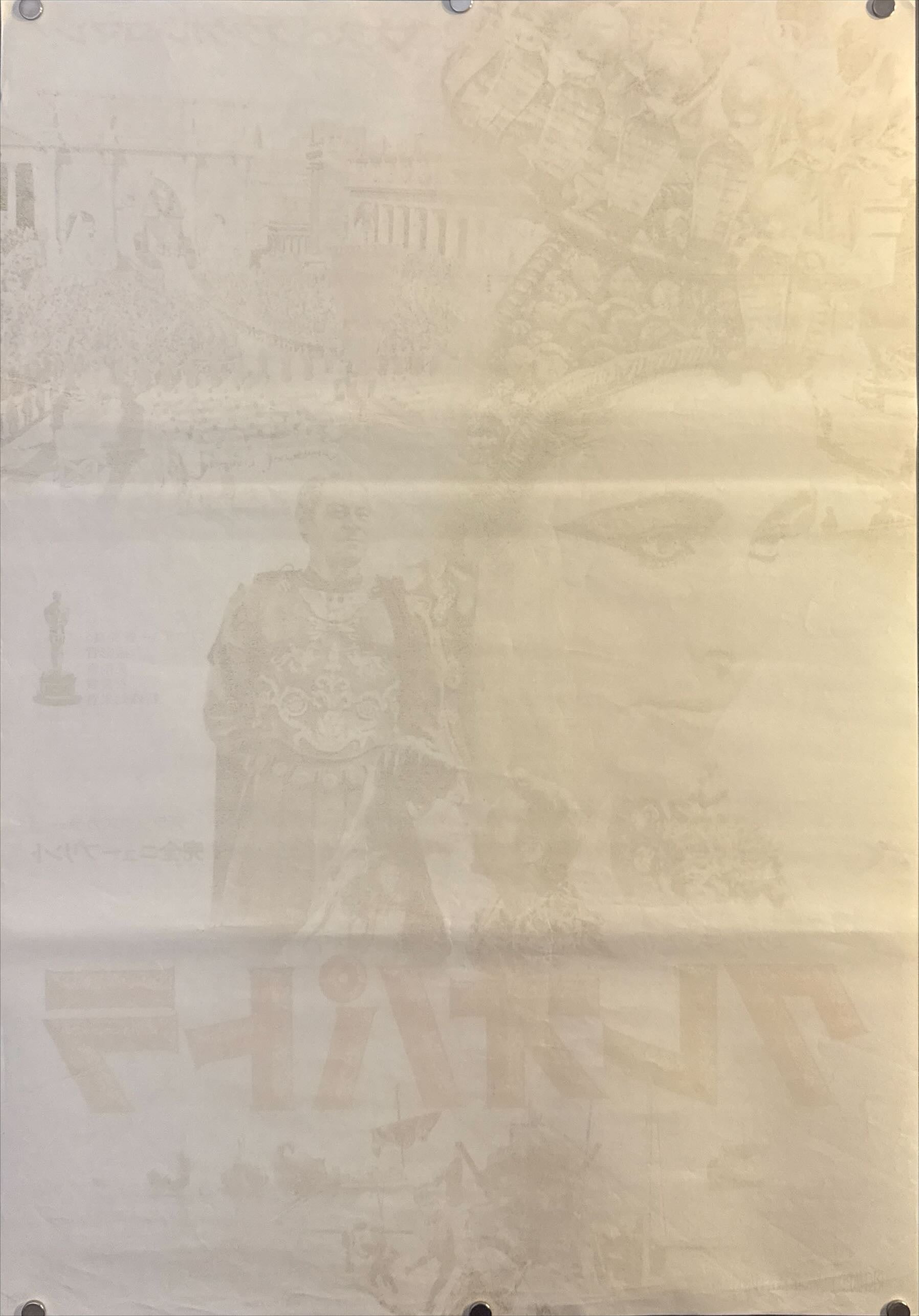 This is an original Japanese B2 poster printed in 1977 for the revival of Joseph L. Mankiewicz’s epic Cleopatra (1963), starring Elizabeth Taylor, Richard Burton, and Rex Harrison. Marketed domestically as a “完全ニュープリント (new complete print),” this campaign reintroduced Fox’s lavish, Oscar-winning spectacle to Japanese audiences.