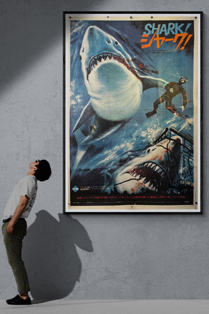 “Shark! (シャーク! / Sharks and Men)” – Original Japanese Giant Billboard Poster, 1976 Extremely Rare Oversize 187 × 127 cm Cinema‑Front Format – Susumu Masukawa Great White Masterpiece