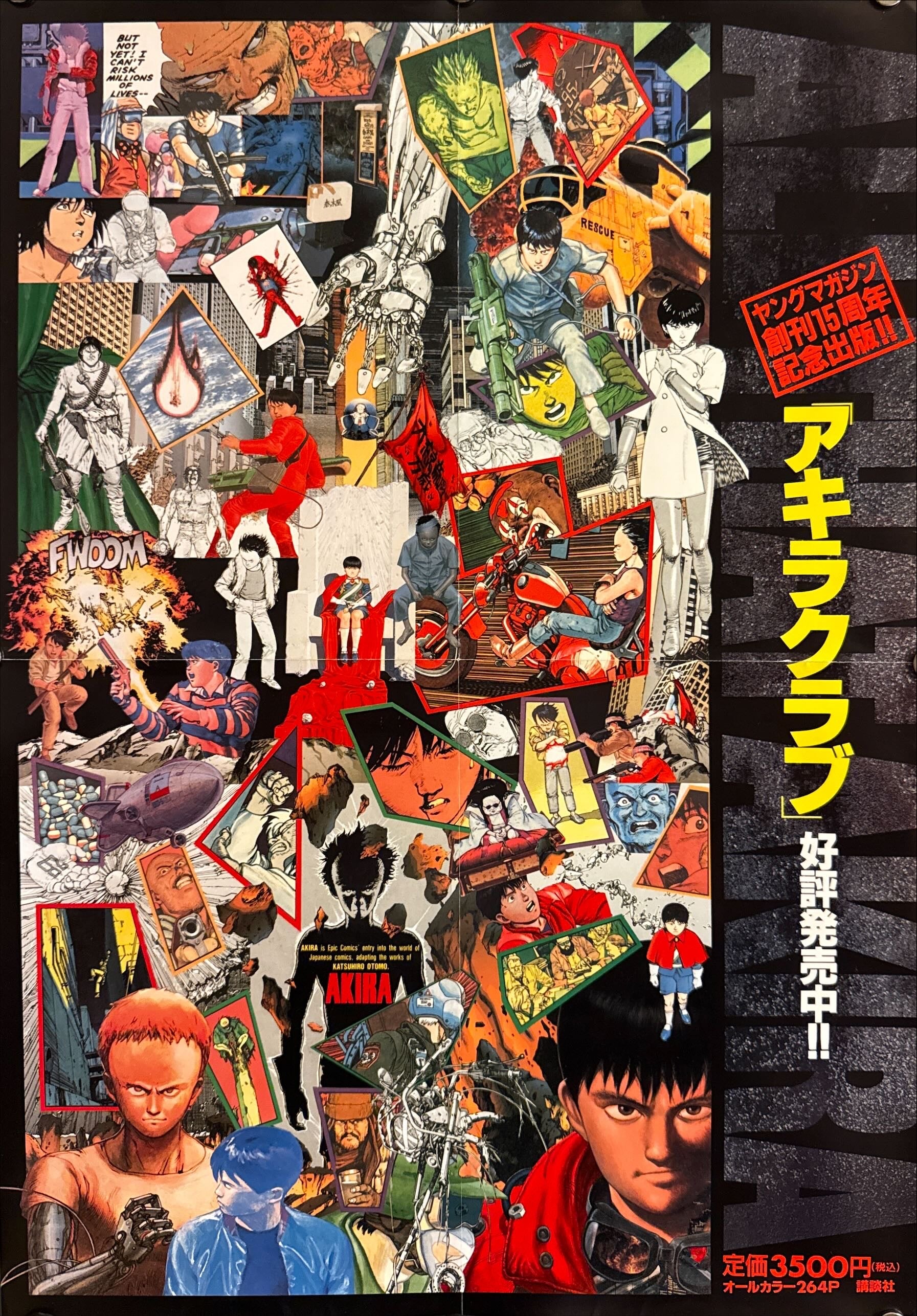 This B3 “Akira Club” poster is far rarer than the standard 1988 Japanese B2 theatrical poster. Produced by Kodansha / Young Magazine in 1995 as a non‑sale promotional item for the deluxe art book Akira Club and Young Magazine’s 15th anniversary, it appears to have been issued only in small numbers for book‑store display and via a limited mail‑in questionnaire campaign. Our detailed research in Japan show just a handful of sales over many years—often described as “super rare” by local sellers—while original B2 movie posters trade regularly in comparison. With Akira’s cultural impact still growing and new generations discovering the series, this scarce mid‑’90s promo has become a genuinely hard‑to‑find piece of Otomo history.