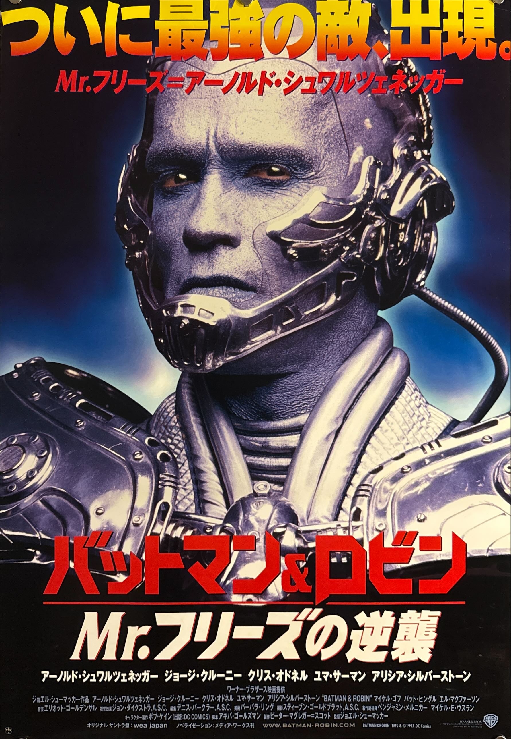 This is an original Japanese B2 poster printed in 1997 for Joel Schumacher’s Batman & Robin, starring George Clooney, Arnold Schwarzenegger, Chris O’Donnell, Uma Thurman, and Alicia Silverstone.