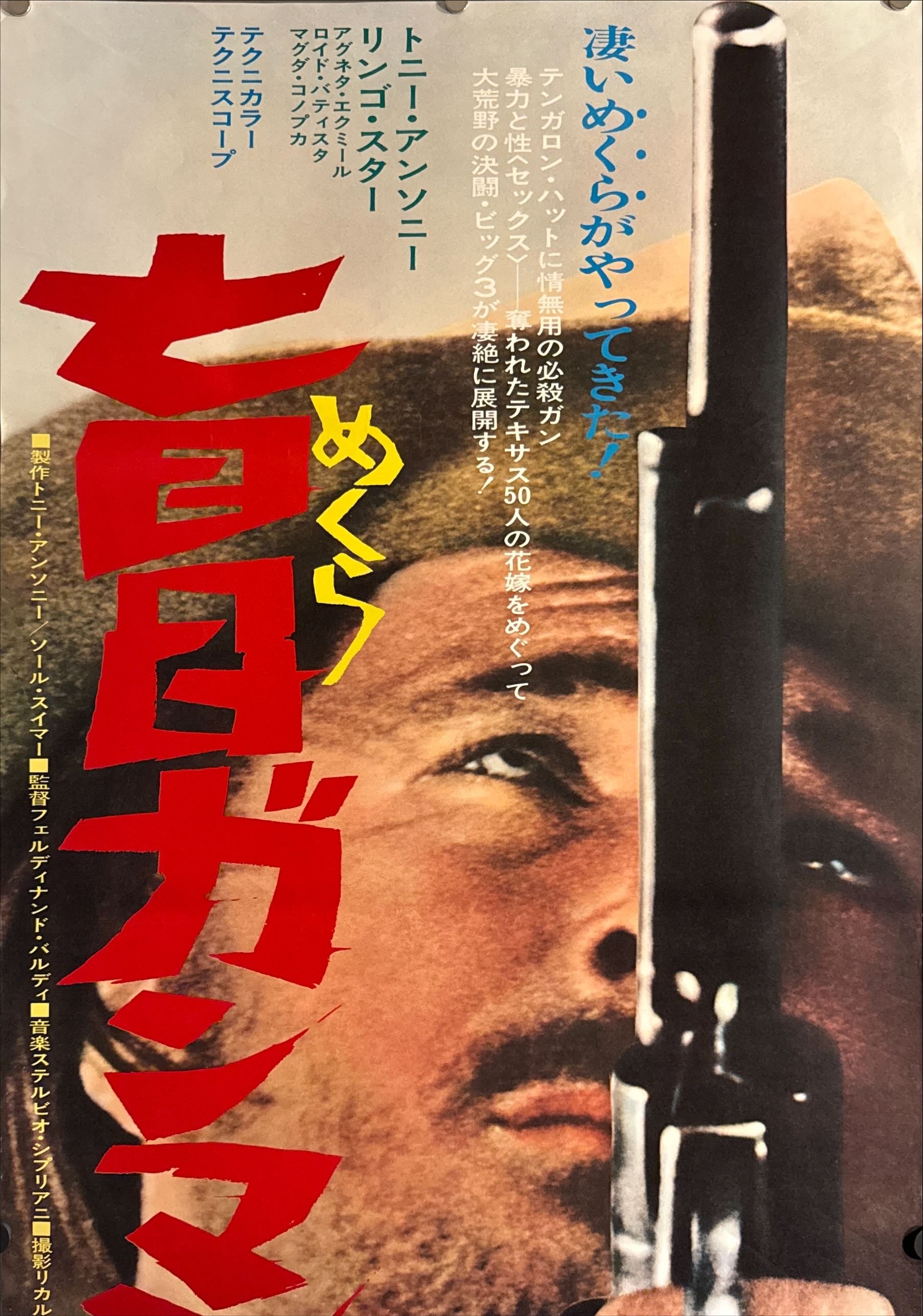 This is an original Japanese STB printed for the first Japanese release of Franco Giraldi’s Seven Guns for the MacGregors starring Robert Woods and Fernando Sancho. Japan opened the film as 「禿鷹のえさ」 (Hagetaka no Esa / “Vultures’ Prey”) on 1967‑11‑14, distributed domestically by Columbia; the sheet bears the Eirin mark and period credit blocks.