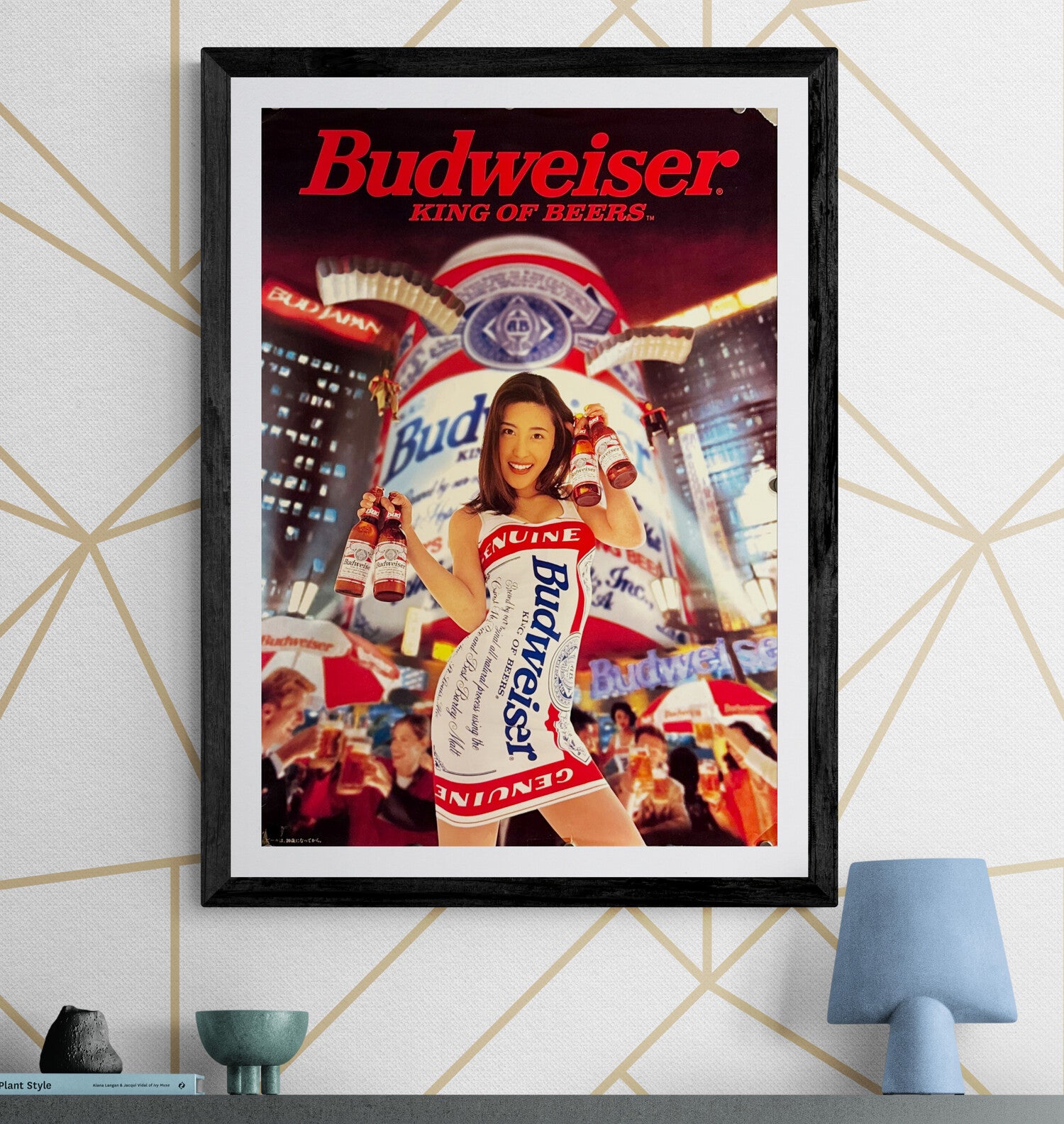 This is an original Japanese B2 advertising poster issued by Bud Japan / Anheuser-Busch for the mid-1990s “Bud Girl” campaign. Shot for retail bars, distributors, and point-of-sale display (rather than mass consumer ads), these shop posters were printed in smaller numbers and are now hard to source in clean condition.