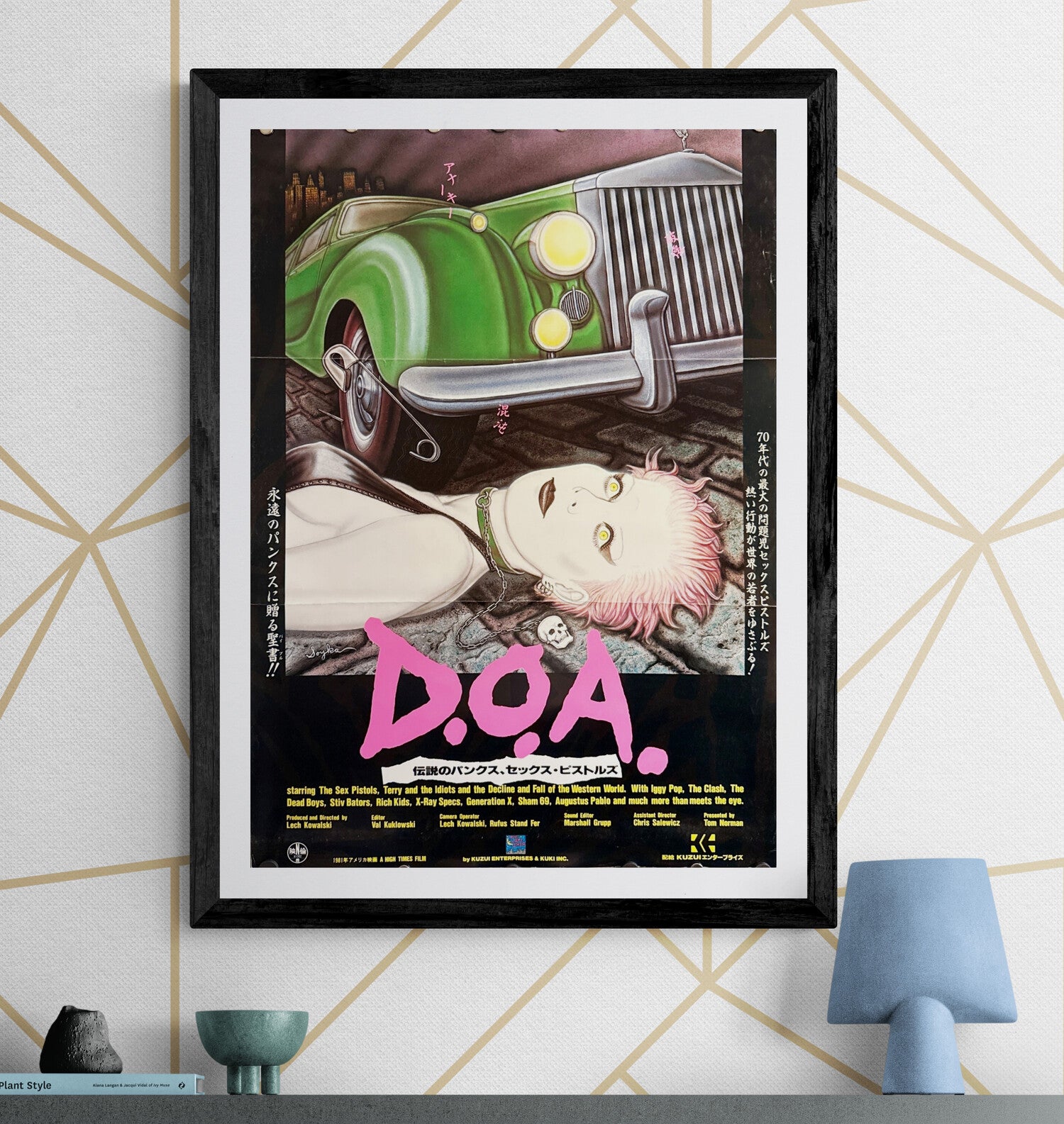 This is an original Japanese B2 poster printed in 1981 for Lech Kowalski’s raw, era-defining punk documentary D.O.A.: A Rite of Passage (1980). Shot during and around the Sex Pistols’ ill-fated 1978 U.S. tour, the film captures the movement’s chaotic lightning-in-a-bottle—live sets, backstage fragments, street interviews, and fellow travelers including The Clash, Iggy Pop, Sham 69, Generation X, and the Dead Boys.