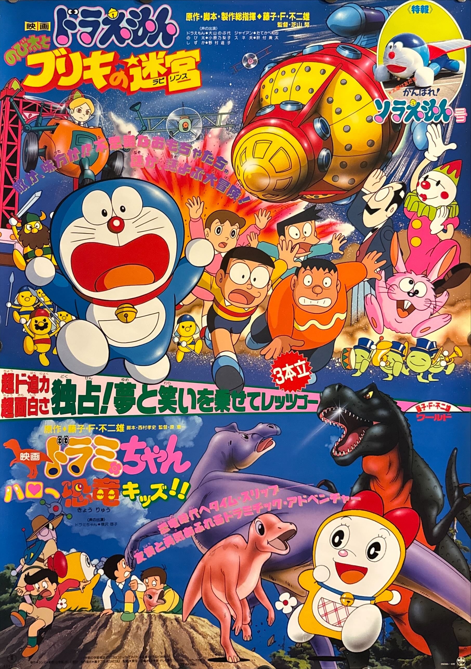 “Doraemon: Nobita and the Tin Labyrinth / Dorami‑chan: Hello, Dynosaurs Kids!!” (映画ドラえもん のび太とブリキの迷宮 / 映画ドラミちゃん ハロー恐竜キッズ!!), Original Release Japanese Movie Poster 1993, B2 Size (51 × 73 cm) ZA362