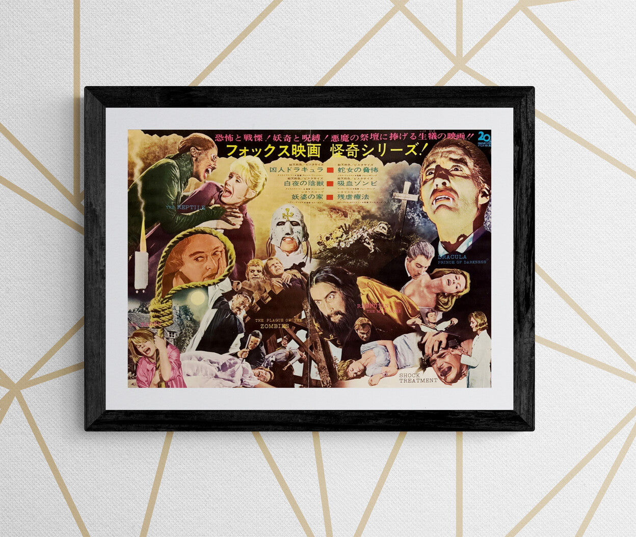 This is an original Japanese poster from the "Fox Movie Horror Series" joint release of Dracula: Prince of Darkness, Rasputin the Mad Monk, Shock Treatment, The Plague of the Zombies, The Nanny, The Reptile in 1966 by 20th Century Fox.