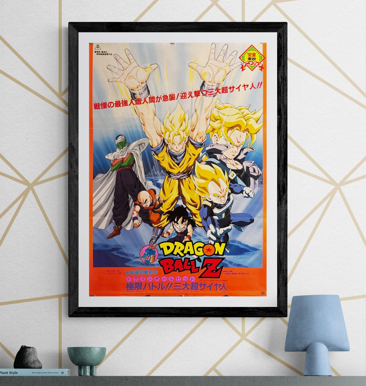 This is an original Japanese B2 poster printed in 1992 for Dragon Ball Z: Super Android 13!—the summer entry in Toei’s ’92 Anime Fair lineup. Goku, Vegeta, and Future Trunks headline as the “three Super Saiyans” face off against the Red Ribbon Androids in a fan-favorite theatrical adventure.