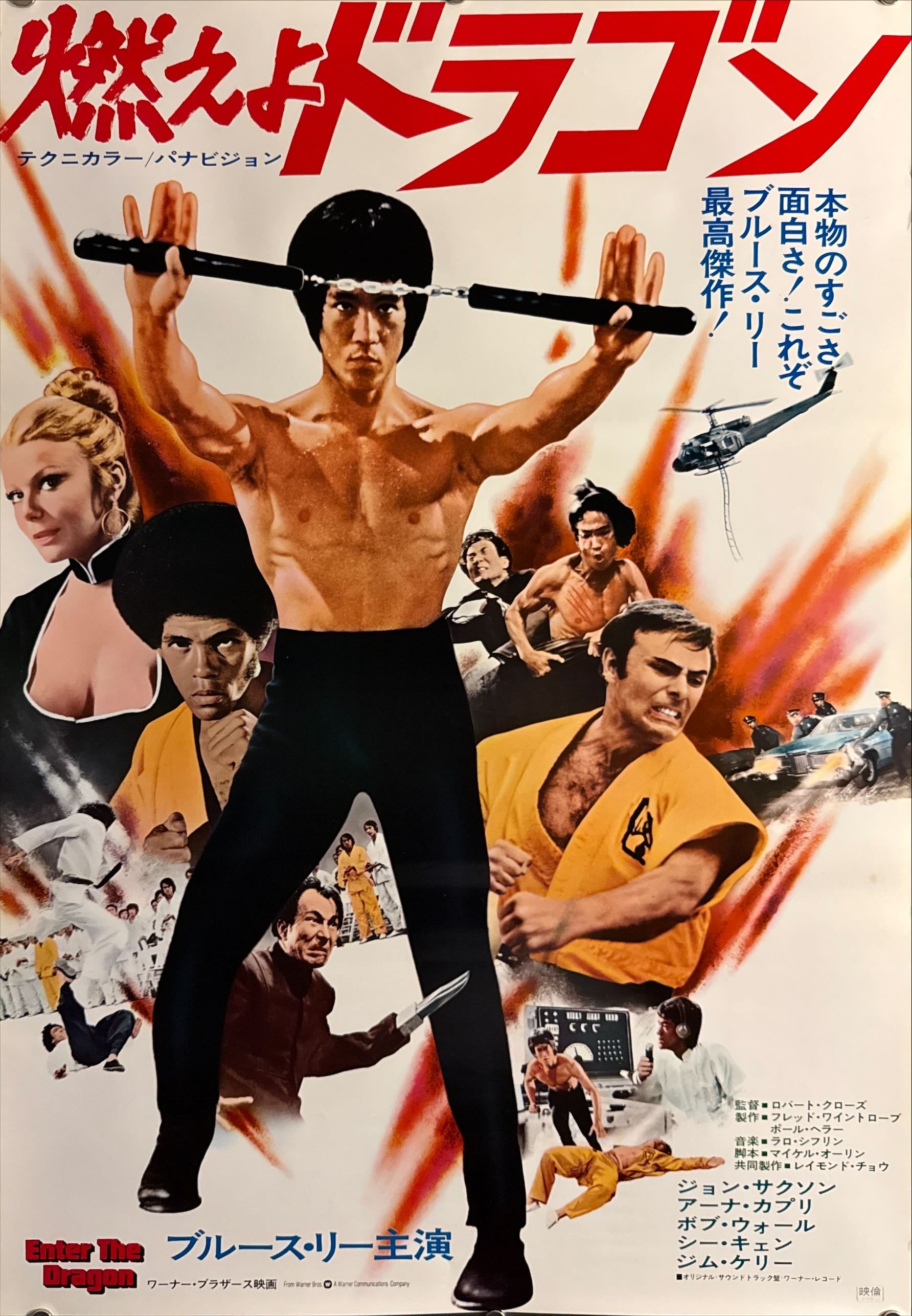 This is an original Japanese B2 poster printed in 1973 for the first domestic theatrical release of Enter the Dragon (燃えよドラゴン), the landmark Golden Harvest / Warner Bros. co-production released in Japan by Warner Bros. (Warner Communications). First-issue Japanese posters for Bruce Lee’s global breakthrough are among the most sought-after martial-arts sheets.