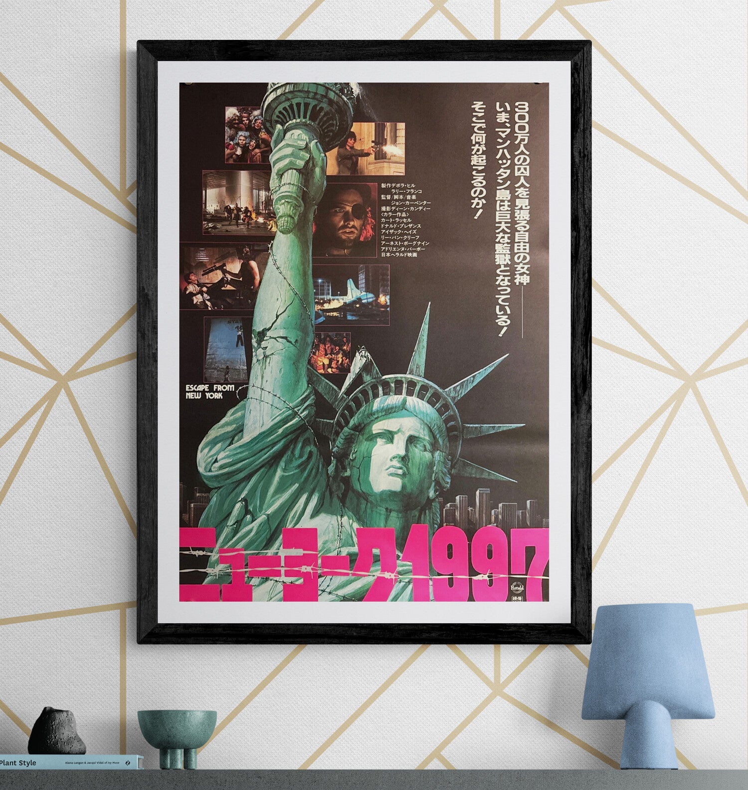 This is an original Japanese B2 theatrical poster printed in 1981 for the Japanese release of John Carpenter’s Escape from New York (ニューヨーク1997), starring Kurt Russell as anti‑hero Snake Plissken alongside Lee Van Cleef, Donald Pleasence, Ernest Borgnine, and Isaac Hayes. Released in Japan on May 23, 1981, the film’s reputation only grew with time—today it’s firmly entrenched as a cult action/sci‑fi classic, endlessly referenced for its attitude, synth‑soaked mood, and dystopian iconography.